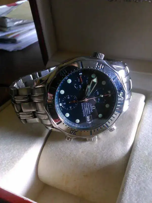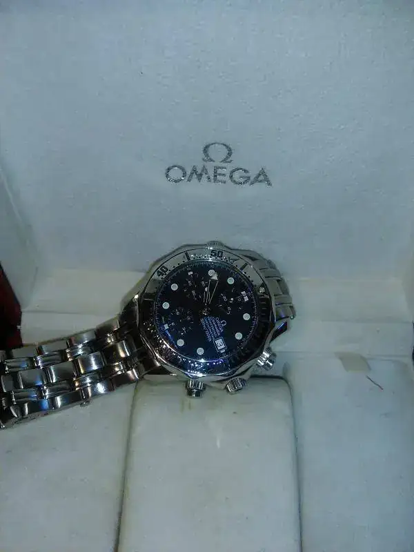 Buenas tardes compañeros vendo este omega seamaster crono, modelo muy raro y especial(mucho mas exclusivo que el de bus el azul) ya que es el modelo de bisel cromado, el reloj esta impecable ya que se ha usado en contadas ocasiones, bisel impoluto, cristal zafiro impecable, armis sin golpes ni desajustes con todos los eslabones, tiene targetas documentación, y papeles es nacional. Funciona a la perfección todas sin funciones. La verdad esta como nuevo no tiene apenas señales de uso , de echo no tengo problema en quedar personalmente para la entrega de esta pieza siempre q sea en Madrid.no puedo aceptar cambios para esta pieza.