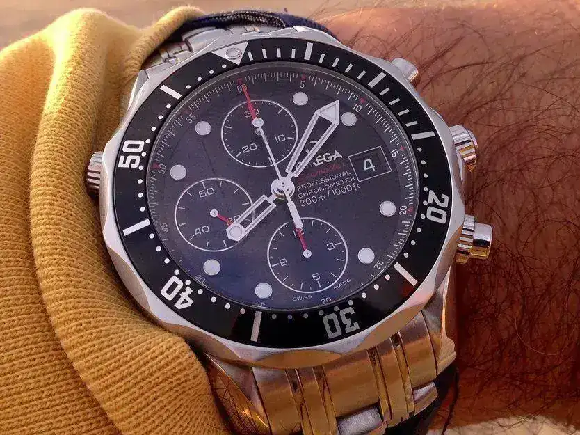 La entrada de otro reloj me obliga a sacar este maravilloso y exclusivo Seamaster Crono Black con luminovas azules.