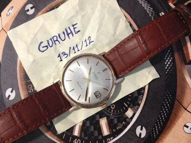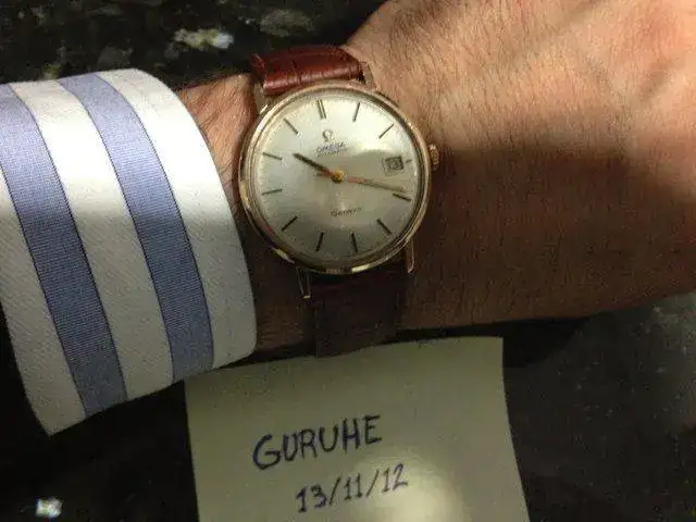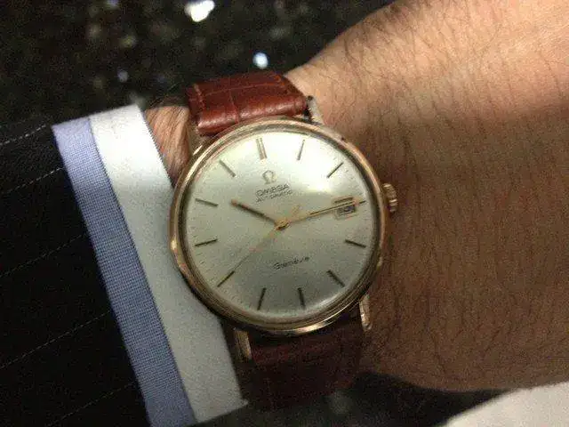 Es un Omega Seamaster De Ville con el súper fiable movimiento automático 565 con pase rápido de fecha, ajuste por cuello de cisne, 24 rubís, Incabloc...