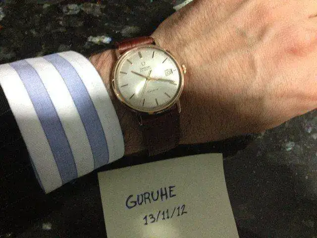 El reloj se llevo para una puesta apunto a un relojero amigo de la familia ya muy mayor, el cual perdió/confundió la esfera original y el reloj tras mucho tiempo de espera regresó con una esfera de Geneve.
