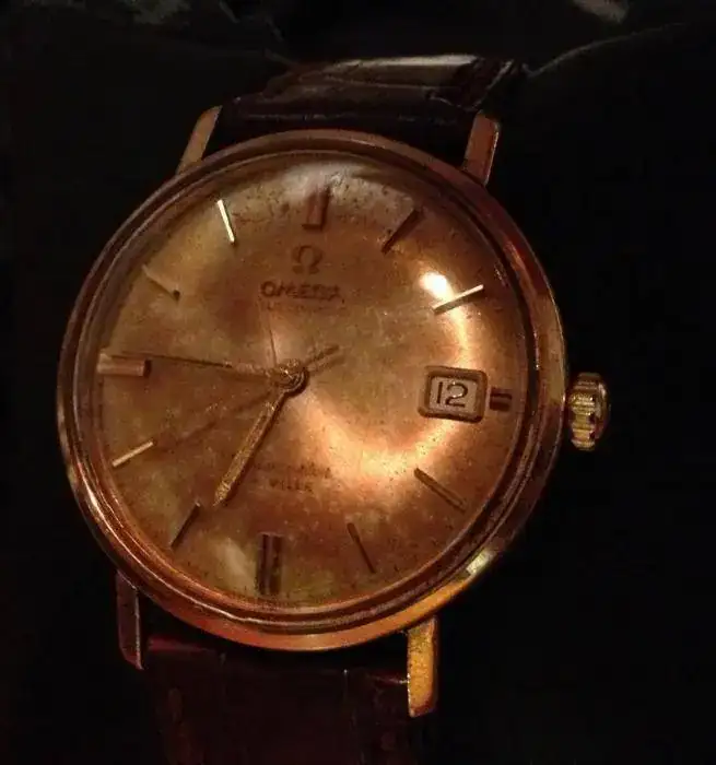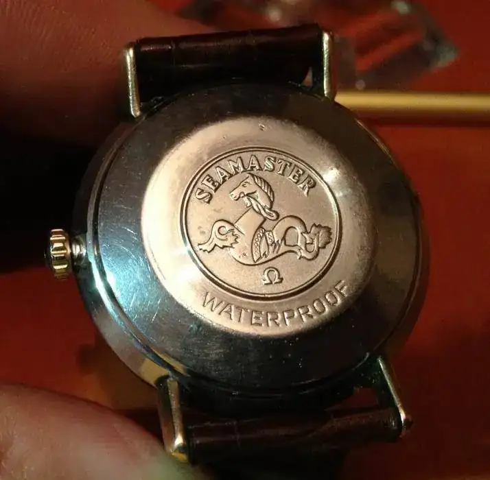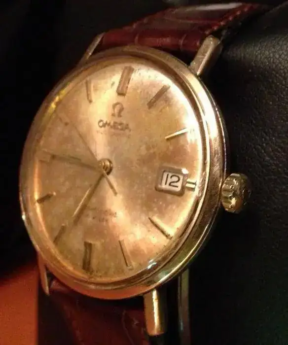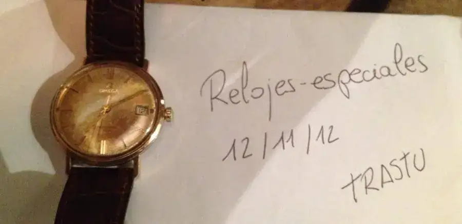 Hola compañeros, han seguido llegando piezas y como siempre se tiene que hacer selección... Éste sale porque tengo otro igual pero con calibre 560. Como digo en el título se trata de un Omega Seamaster de Ville con caja monobloc de los años 60 con bisel chapado en oro y con parte trasera en acero, marcada con el caballito típico de los Seamaster. Qué decir del calibre, un 562 en muy buen estado tanto estético como de marcha. Además estas cajas eran especiales por ser de las primeras con el Waterproof marcado detrás, que no es mas que una resistencia mínima al agua (ahora ni se os ocurra de mojarlo). El único problema que tiene este es que la esfera ha sufrido mucho. A mi me gusta, por eso lo compré, pero debo reconocer que una restauración o cambio simplemente le daría una cara preciosa al reloj. Como punto importante, que el cristal está marcado con el símbolo Omega, cuando lo desmonté para ver el calibre y el estado general intenté sacarlo en la foto pero es imposible. Así que yo aconsejo pulir el cristal mejor que buscarle un recambio no original. MUY IMPORTANTE, el reloj lo mando sin correa, ya que la que tiene se la he puesto solo para sacarle las fotos.