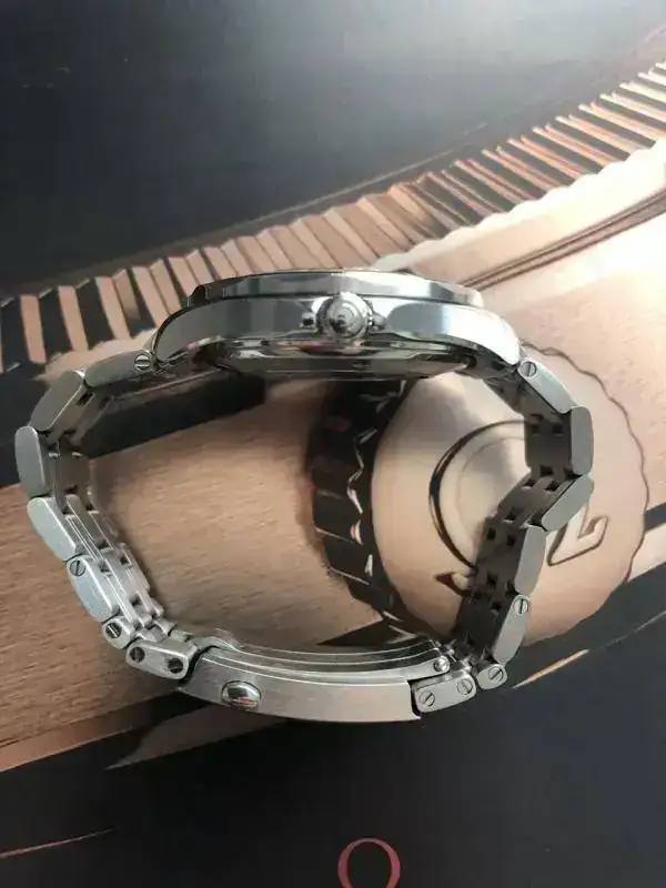 Lo compre al propietario original que me lo vendió sin uso. El reloj actualmente está en muy buen estado pero está usado, con cuidado y mucha rotación pero se ha usado, de modo que el que busque un reloj nuevo, no es este que presento. Tiene algunas marcas en el brazalete (ligeras, nada de golpes).