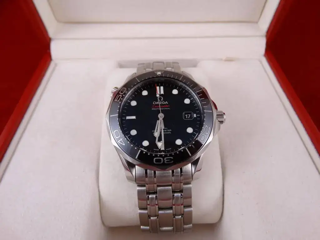 Hoy sacamos a la venta la última evolución de un mito entre los Divers, el Seamaster en su versión más actual, con bisel cerámico negro y una esfera que, aunque haya perdido las olitas, no deja indiferente a nadie que lo tenga en su muñeca. Sus 41mm lo hacen idóneo tanto para muñecas comedidas como para aquellas que necesiten ese tamaño estándar. Es cierto que hay muchos que han visto en el armis el punto flaco del Seamaster, aunque por cada uno que lo dice nos encontramos con otro que alaba su extraordinaria comodidad.