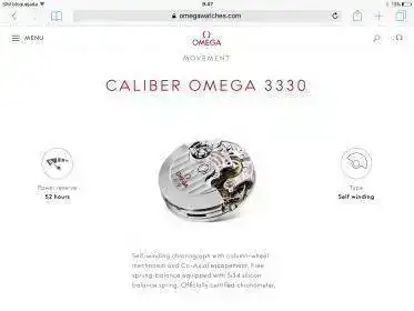 Esta percepcion de calidad se acompaña por el calibre 3330 que es cronografico, automatico, con escape Co-Axial, espiral de silicio, rueda de pilares, reserva de marcha de 52 horas y ademas COSC.