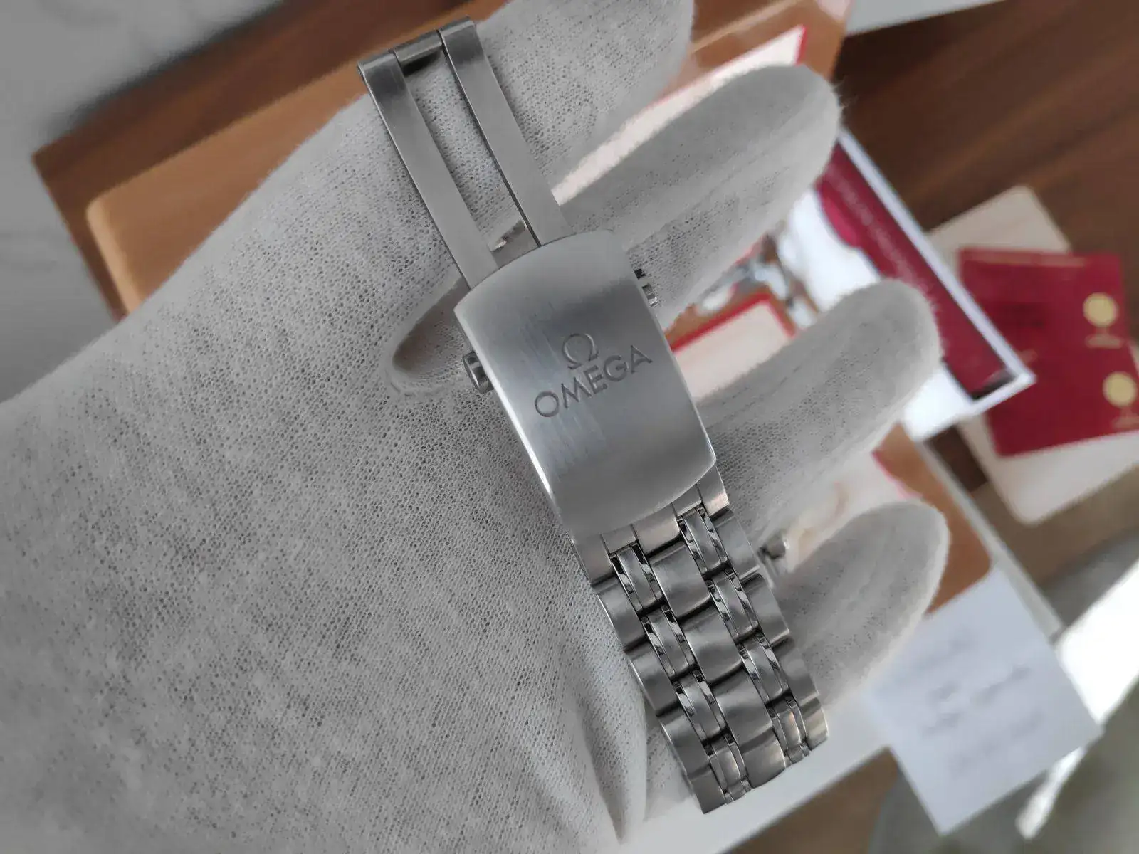 El reloj se ofrece con brazalete de acero noble. Este OMEGA Seamaster Diver 300M está equipado con el calibre 2500 Co-Axial.
