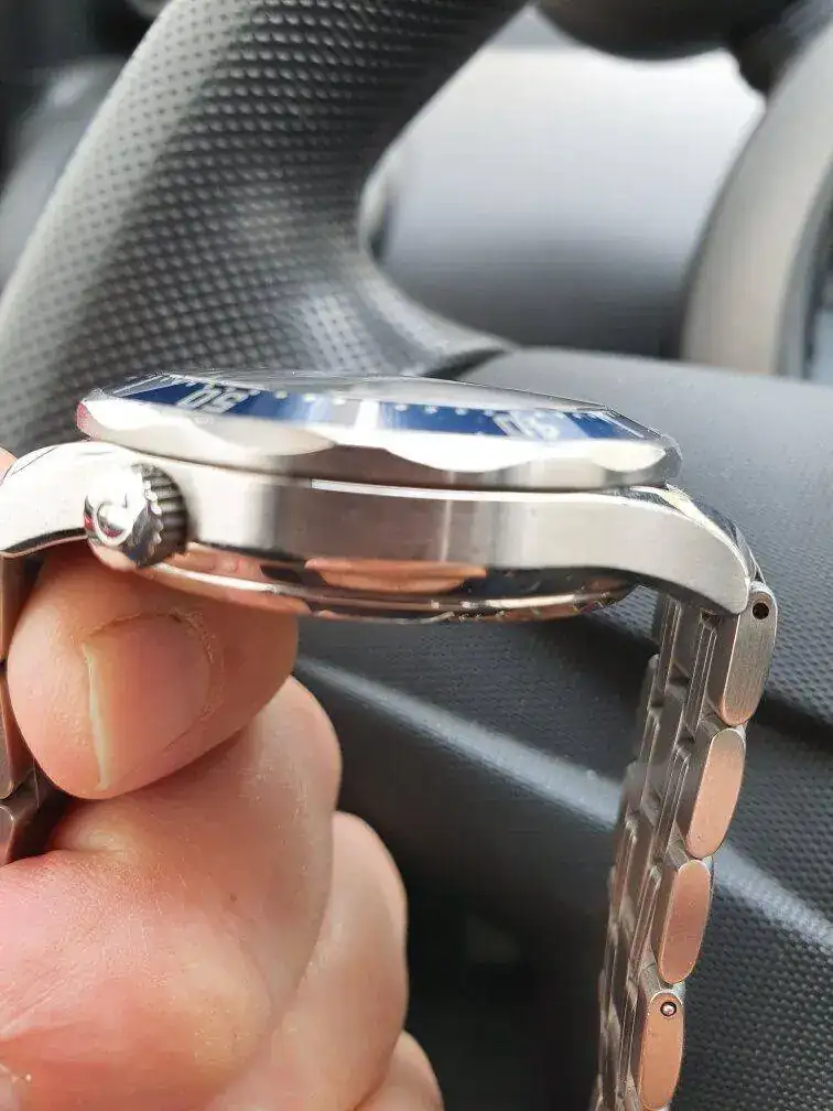 Como se aprecia, el bisel está un poco tocado pero no se ve feo, quien quiera más fotos que las pida.