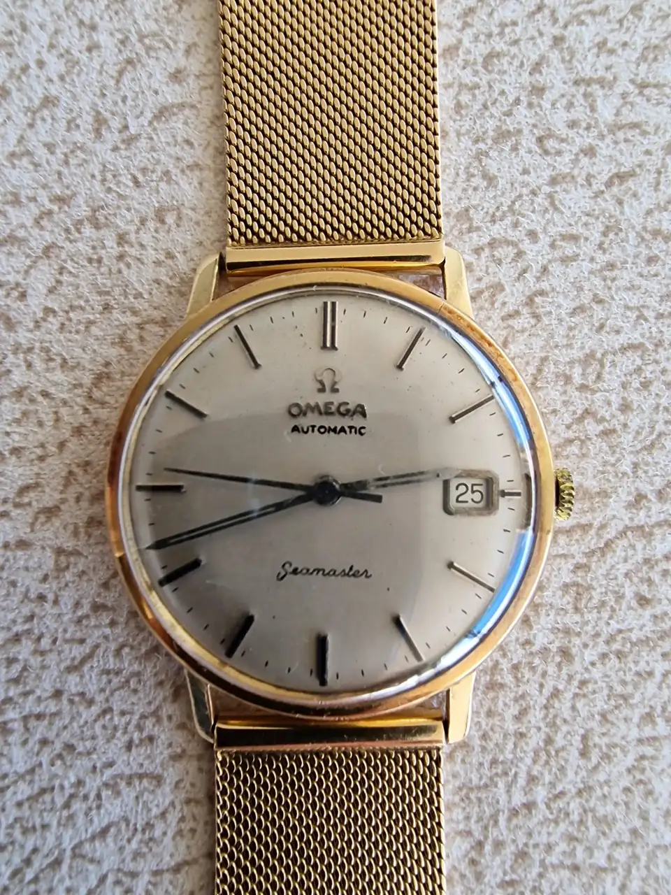 Hola a todos, ayer estuve con un amigo que me pidió consejo sobre un reloj de su padre. Se trata de un omega seamaster de oro, de 34 ó 35 mm.