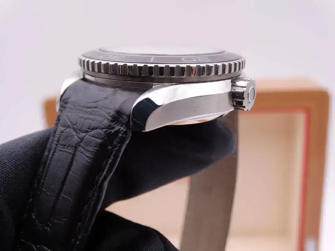 La versión Planet Ocean con sus 600m le confiere más fuerza al reloj, compensado por su grosor y diseño de caja; aún mas en la versión de 37,5mm ya descatalogados y que permite disfrutar de un potente Diver a quien disponga de una muñeca muy contenida.