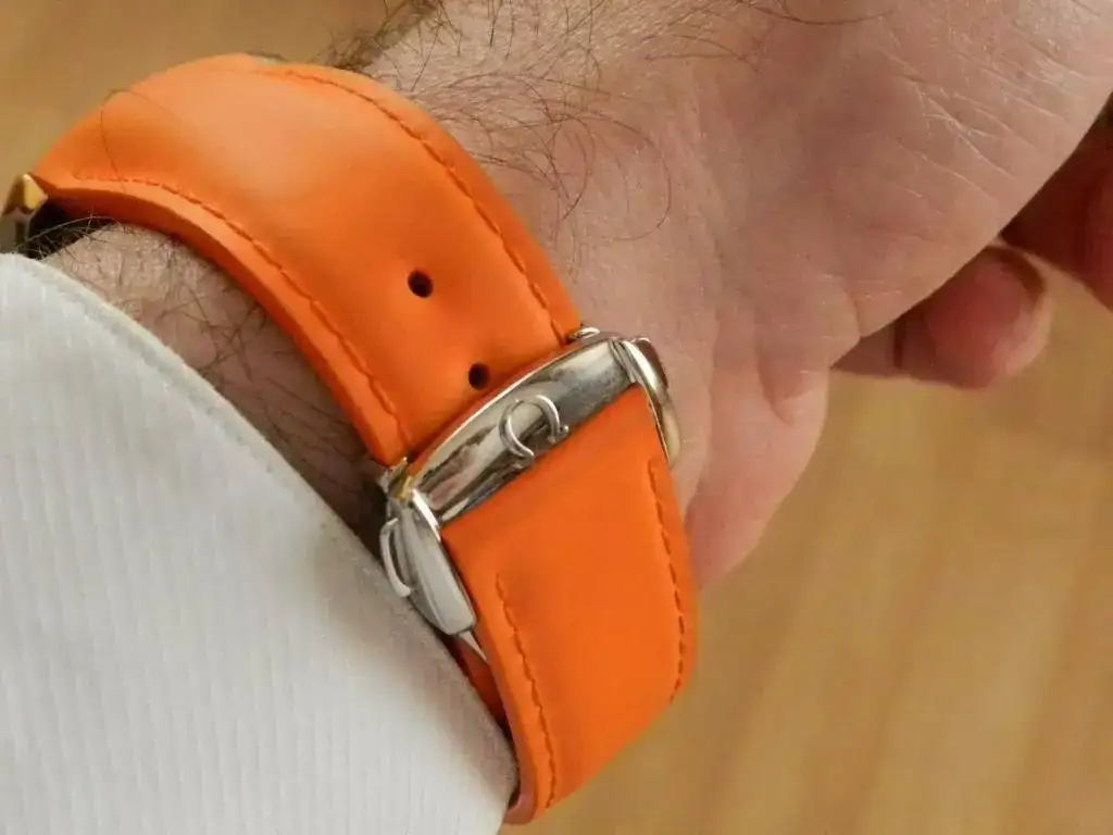 1. Naranja (es que le lleva ahora) integrado en la caja del reloj, caucho nautico, comprado a finales de Diciembre, vamos nuevo.