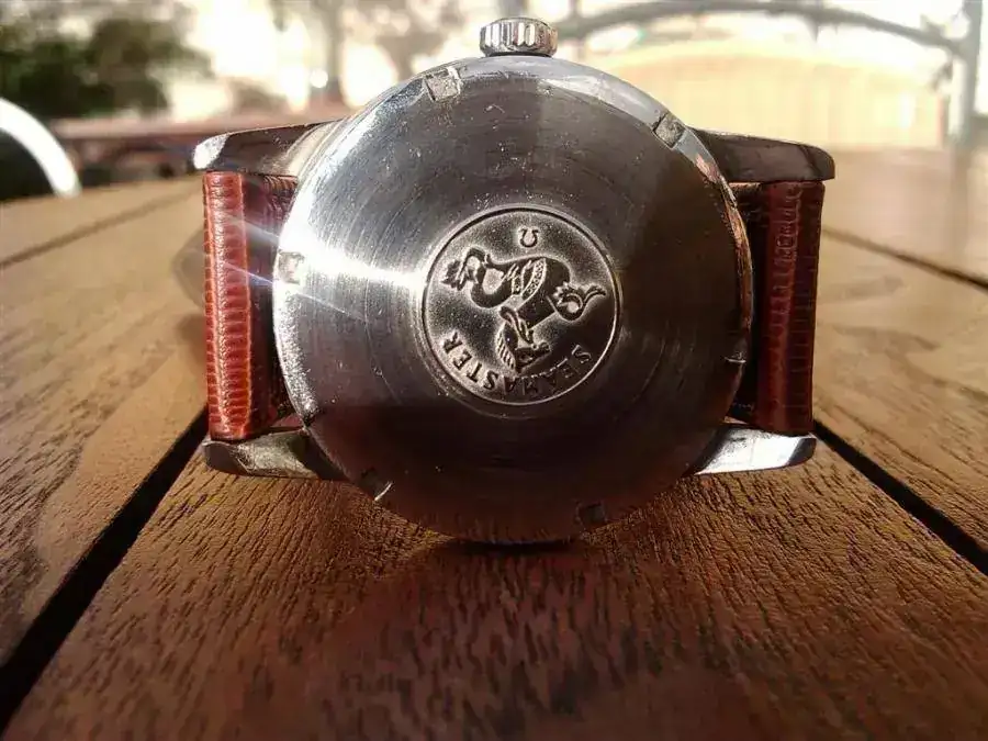 Este modelo tiene caja de acero de 38 mm,corona incluida.Caja de acero roscada,con la marca del hipocampo y el "Seamaster" en la tapa trasera.