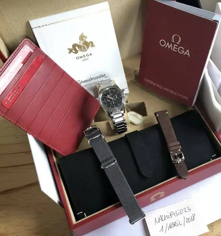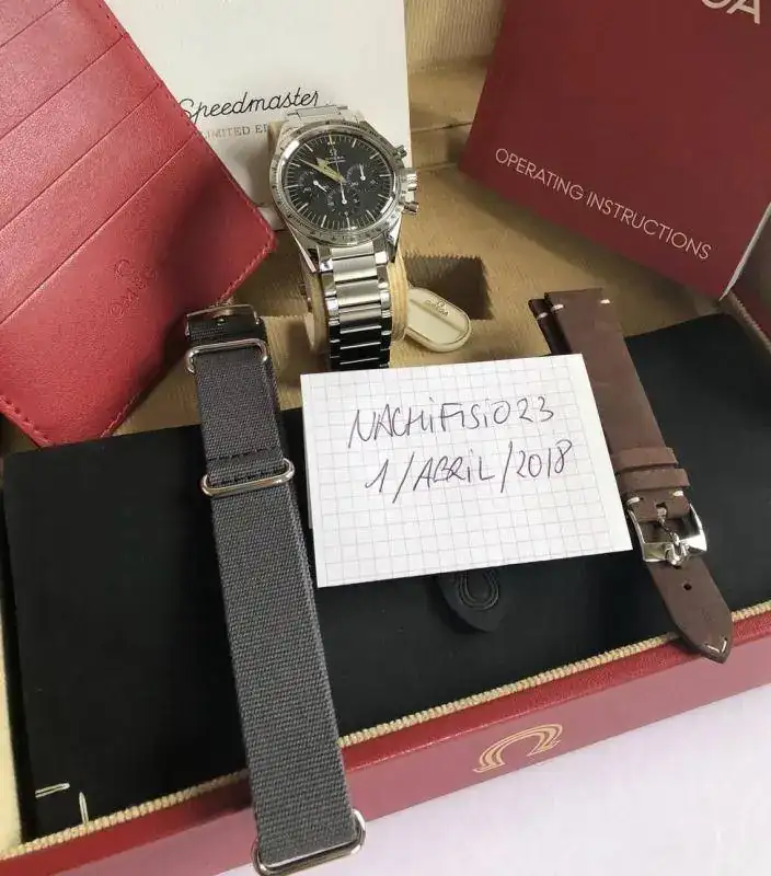 Saco para venta este precioso y muy especial Omega Speedmaster 1957 Trilogia 60 Aniversario.El reloj esta sin estrenar, con sus plásticos. Pertenece a una serie limitada a 3557 unidades para todo el mundo. El formato de presentacion tambien es digno de reseñar. Viene con un impresionante estuche de piel para guardar las dos correas y una herramienta para cambiar tanto armis como ambas correas. Las correas son una nato gris y una de piel con buckle omega, estilo vintage.