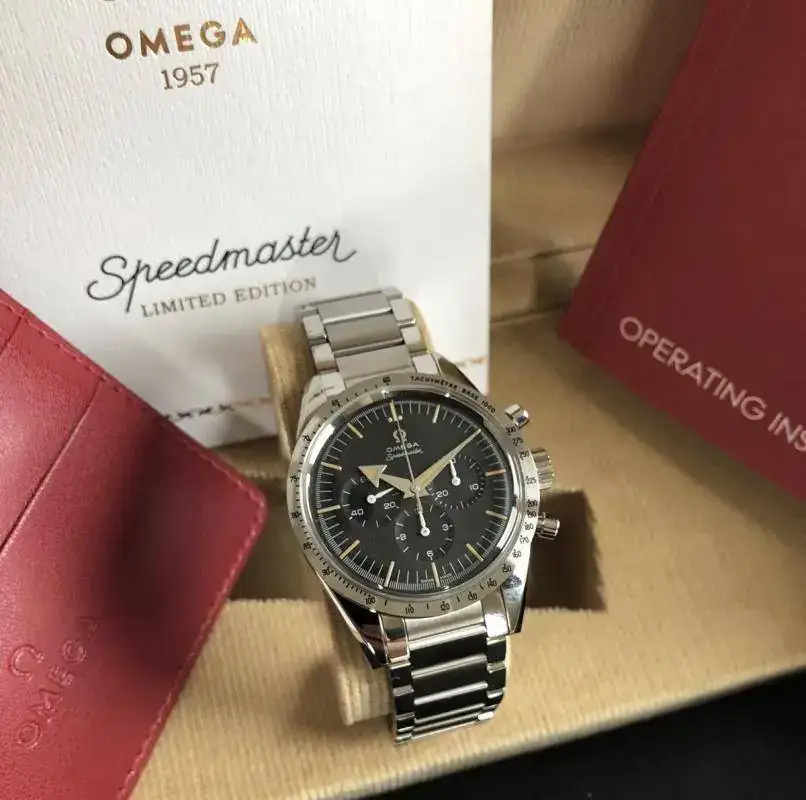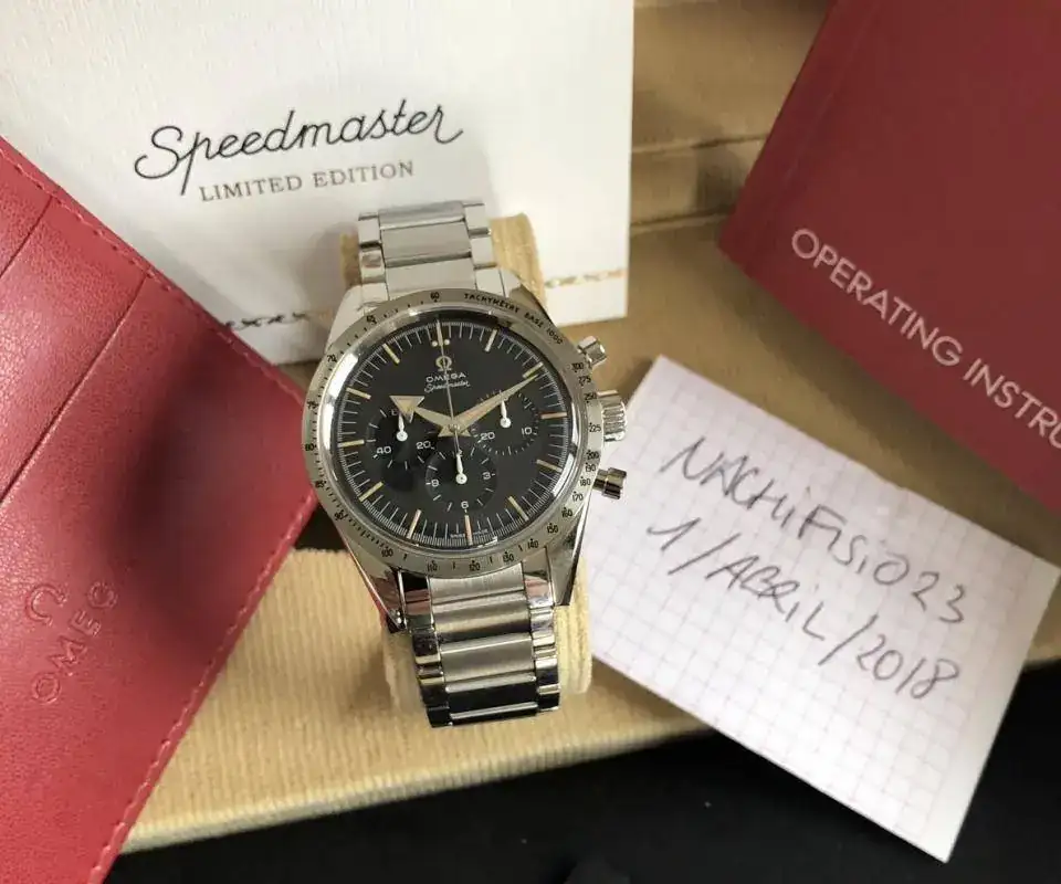 Homenaje en su 60 aniversario a uno de los tres relojes clásicos lanzados en 1957, este Speedmaster, limitado a 3557 ejemplares, se basa en el original "Broad Arrow", que fue no solo el primer Speedmaster, fue también el primer cronógrafo de pulsera que hubo en el mundo con escala de taquímetro en el bisel, en lugar de impreso en la esfera. Este modelo de 2017 se ajusta perfectamente a cada característica del original y permanece fiel al emblemático estilo del Speedmaster.