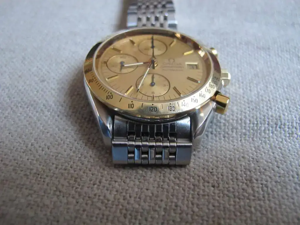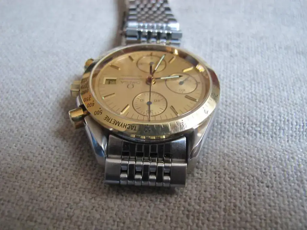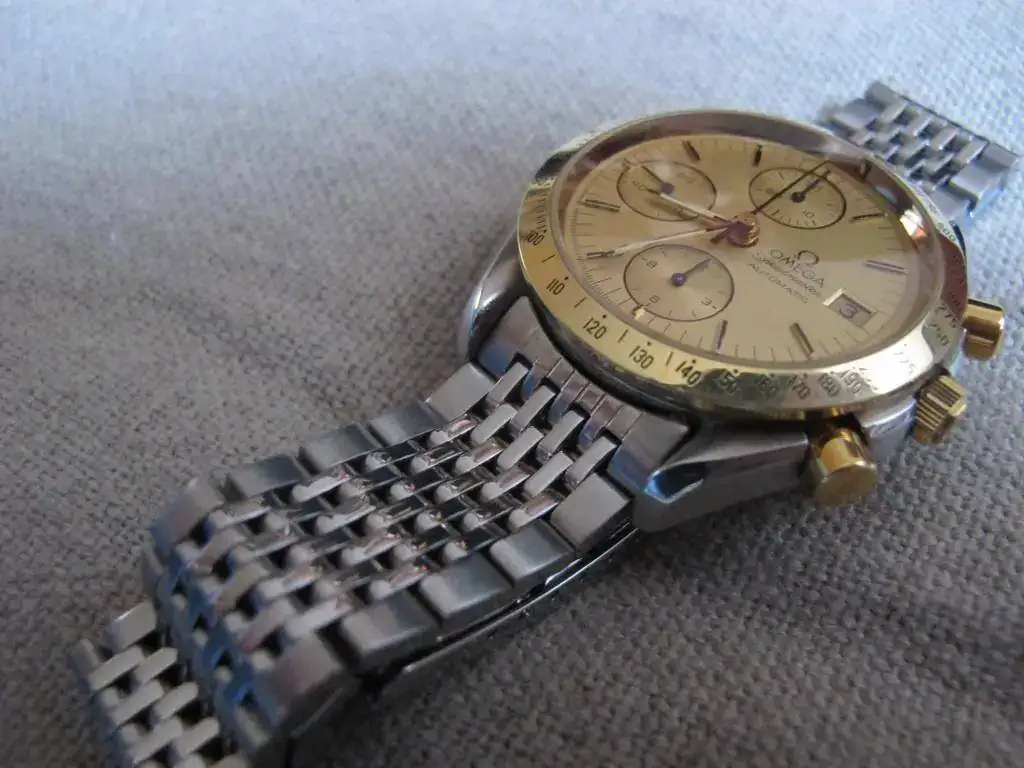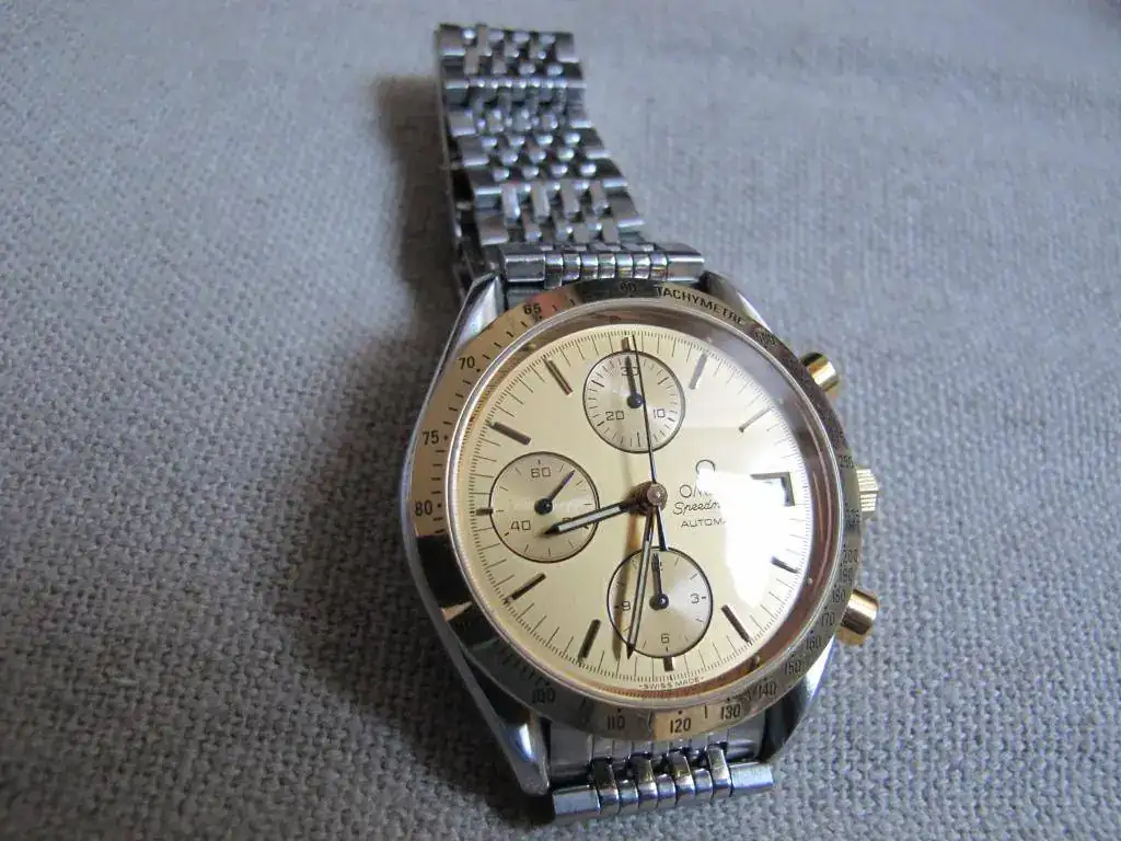OMEGA SPEEDMASTER DATE automático acero – oro (bisel, agujas corona y pulsadores de oro), reloj muy conocido por la gran mayoría pero enumeraré alguna de sus características: