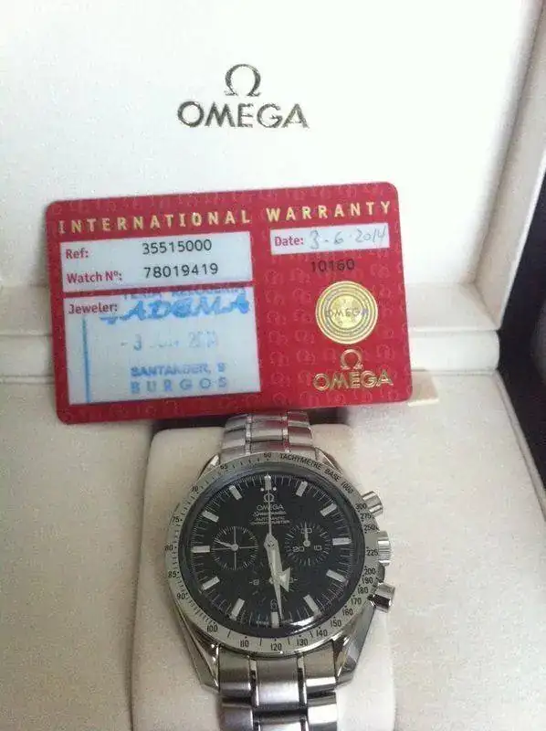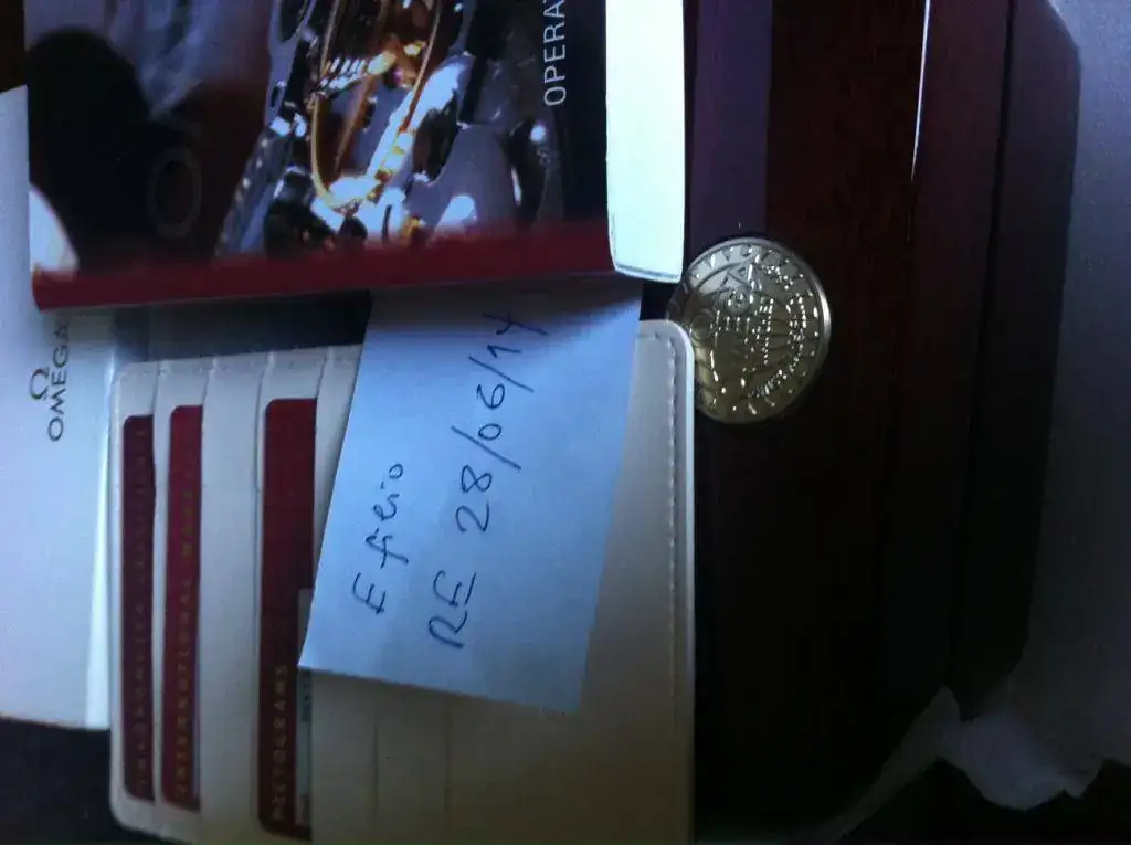 El reloj viene con toda la dotación como si lo sacárais del concesionario y con toda la garantía por delante. Viene con una espectacular caja de madera omega con el logo dorado.