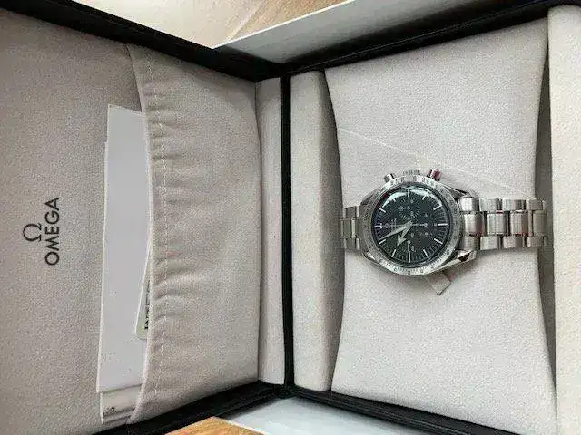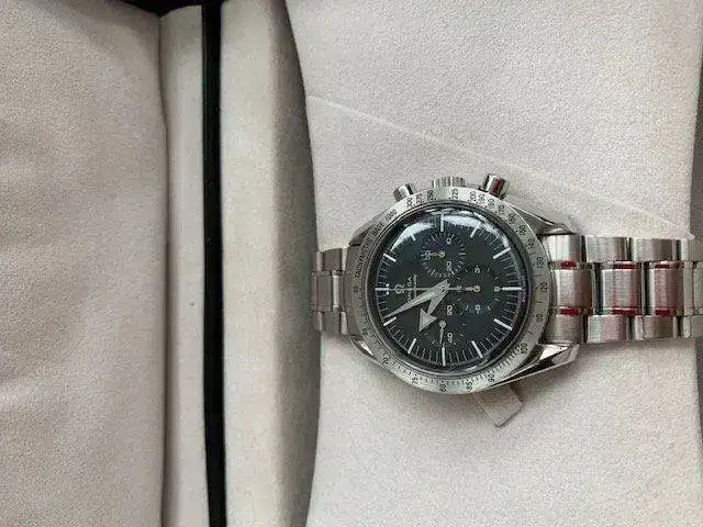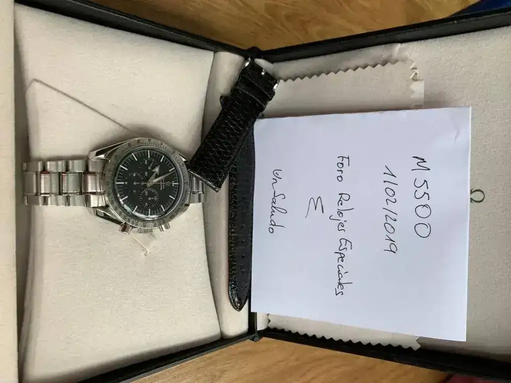 Vendo Omega Speedmaster Broad Arrow 1957 replica 3594.50, en un estado excelente y con toda su dotación original, caja negra de piel , documentación, caja blanca exterior y hasta su trapito original, ademas regalo una correa de piel de lagarto original, pasada revisión por relojero de confianza, poco más que decir, cualquier cosa os contesto por privado.