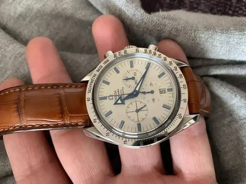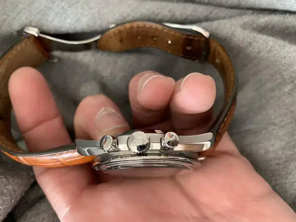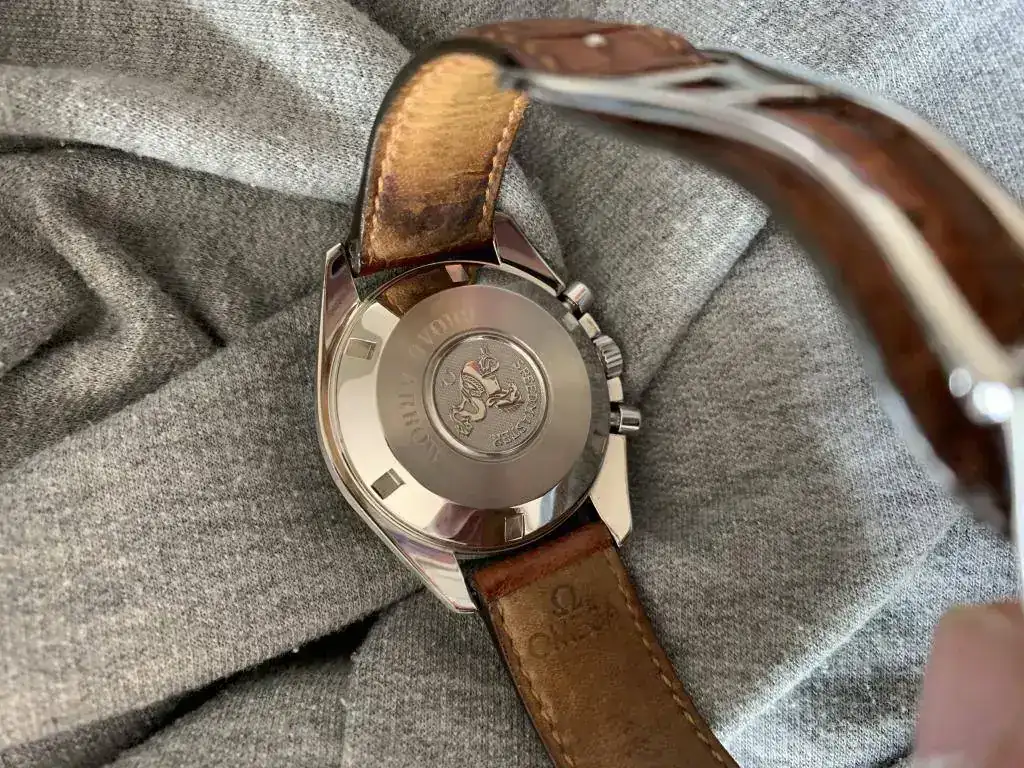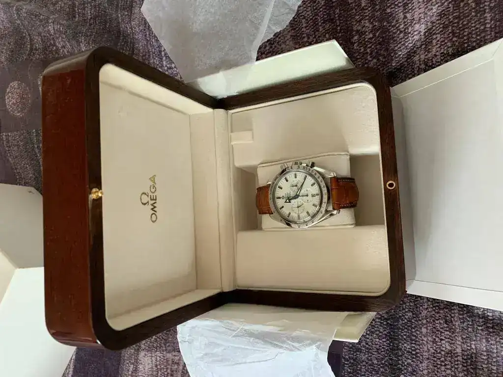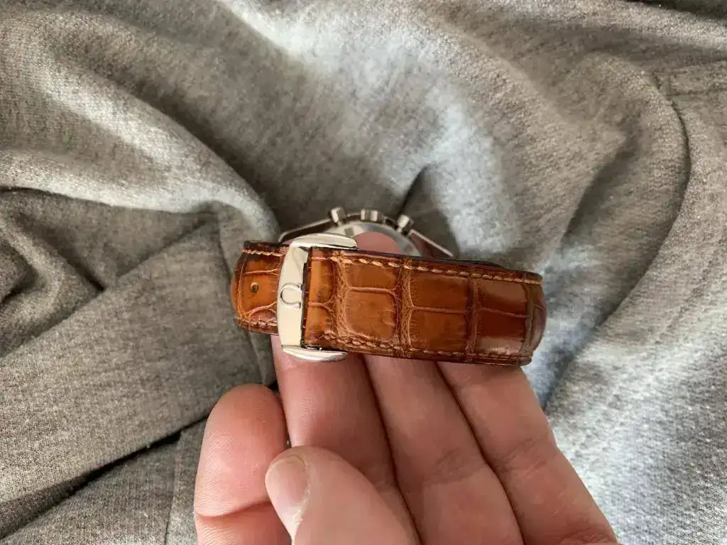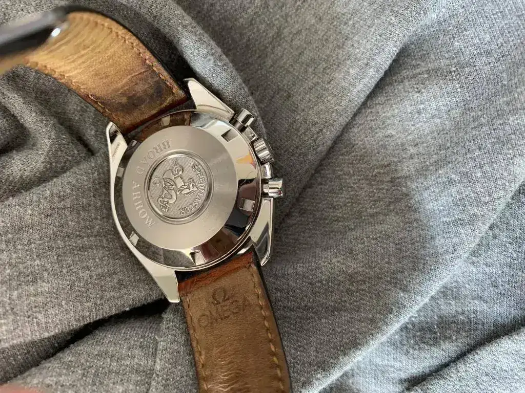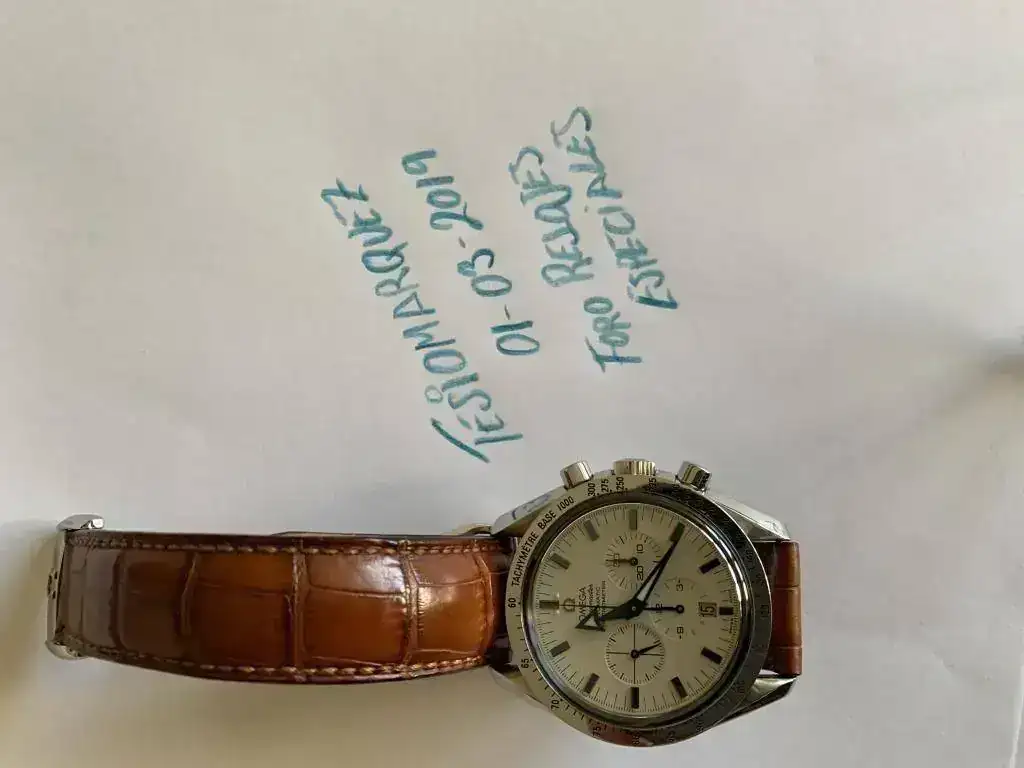 Buenas Noches amigos. Saco a la venta este precioso speedy broad. Está en muy buen estado, sin apenas marcas , el cristal perfecto. El bisel presenta alguna le Ievísima marca, que trato de mostrar en las imágenes pero difícil de sacar pues como digo son muy leves, pero todo hay que decirlo. La correa original con mucha vida por delante. Un 8 sobre 10 diría yo. También acompaña una correa Omega original en marrón chocolate que le queda de vicio.