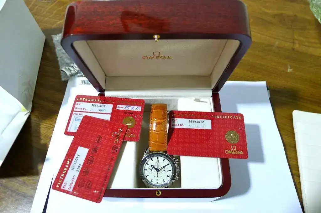 Completo de todas sus cajas (la interior de madera lacada); documentación, libro de instrucciones; tarjetas de garantía, certificado de cronometro, pictogramas, tarjetero, etc.