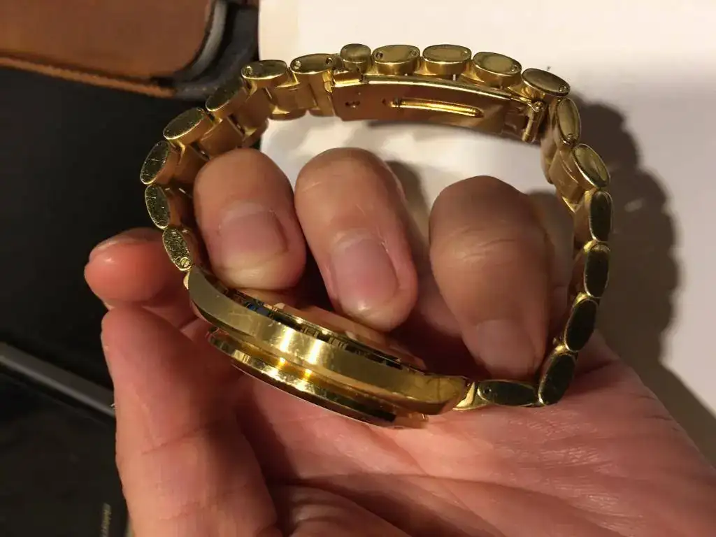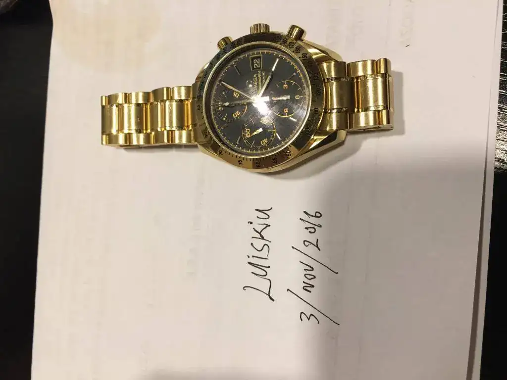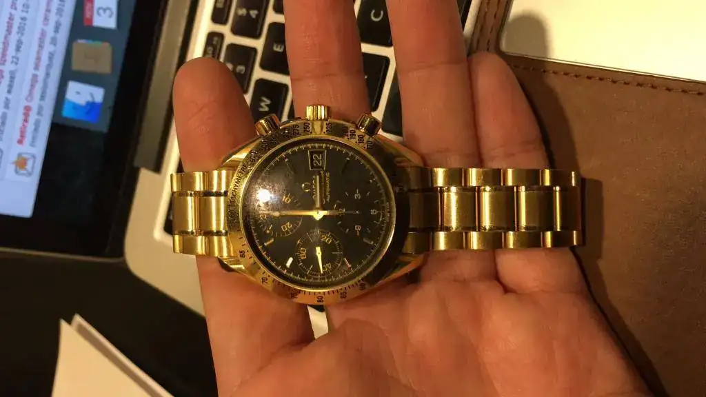 Pongo a la venta este Omega speedmaster chrono automático en oro del año 2004 en perfecto estado nada de holgura muy poco uso, dispongo de solo reloj, solo en oro pesa 180 gramos, lo vendo casi a precio peso del oro.