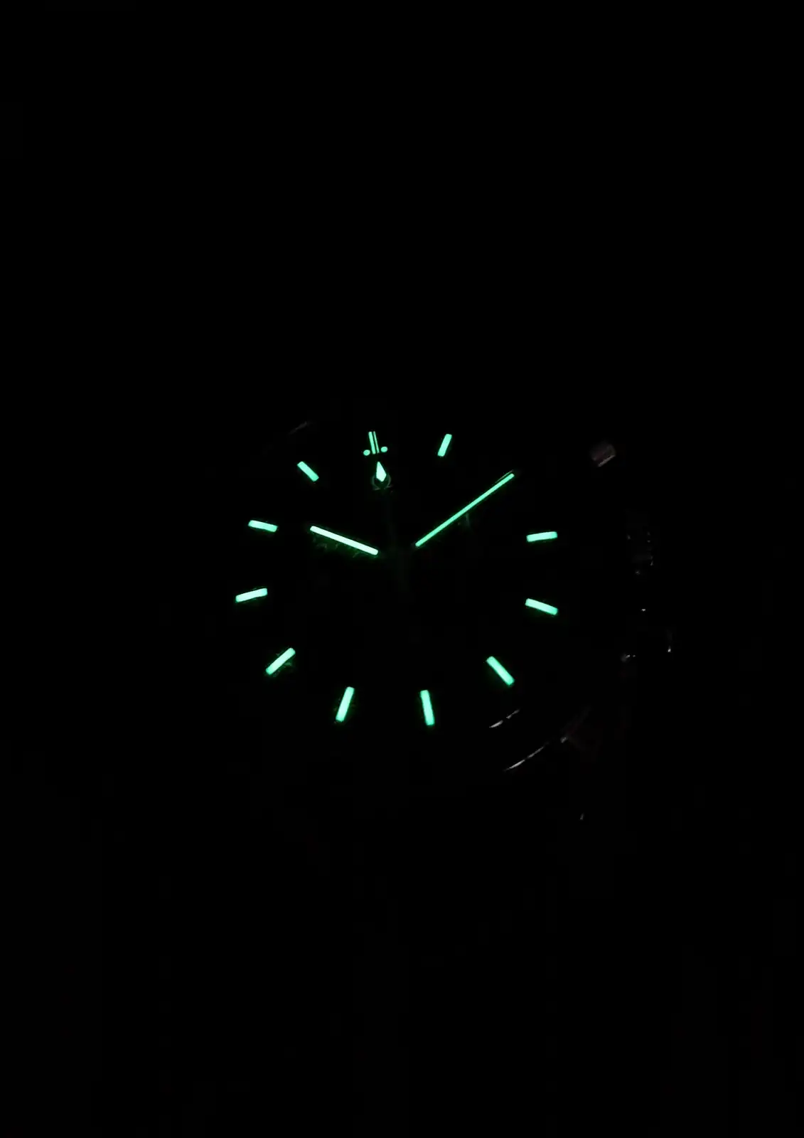 Tampoco puede faltar una foto del lumen. Fue una de las cosas que más me sorprendió del reloj: su intensidad, su aplicación perfecta y milimétrica y su duración, más aun teniendo en cuenta que no es un diver.