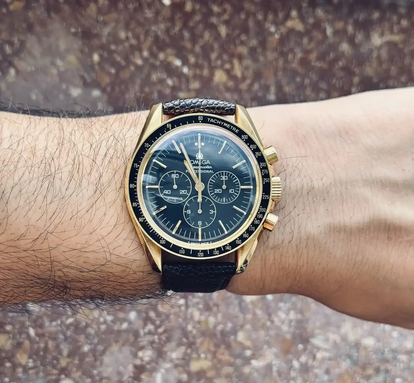 Os presento mi Omega Speedmaster 3691.50, una referencia poco común en oro amarillo de 18k, producida en los años 90.