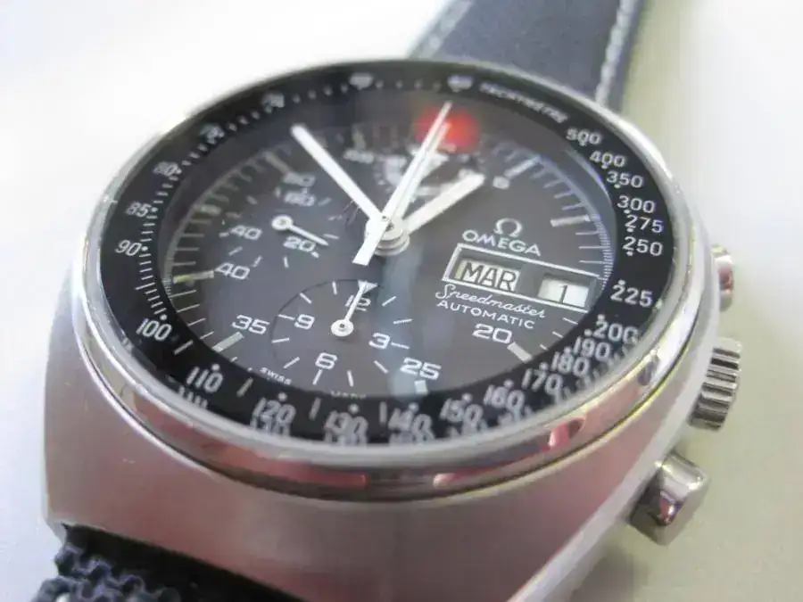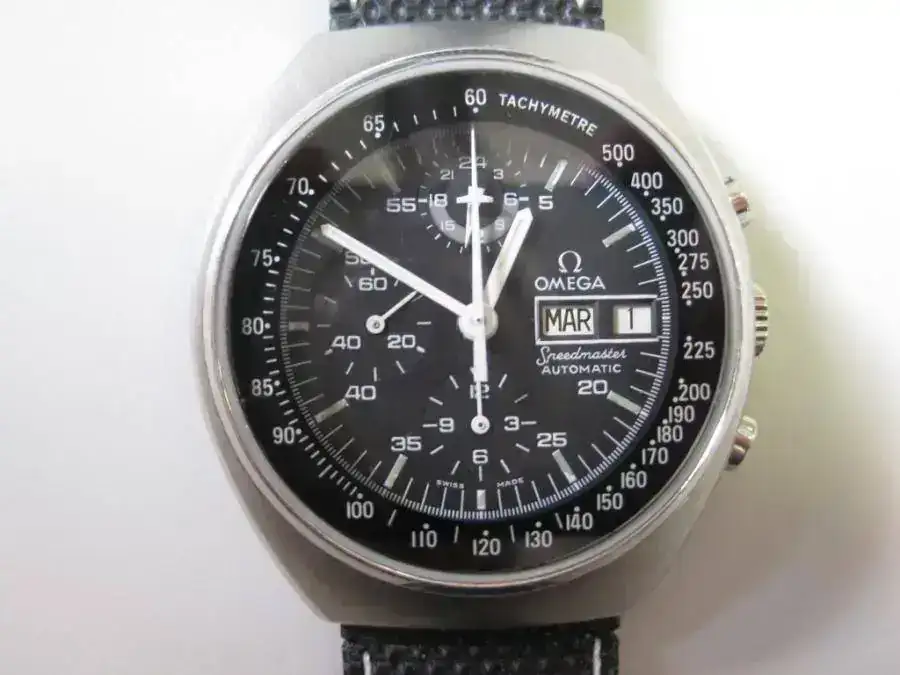 Se trata de un Omega Speedmaster mark 4,5 que carga el mítico calibre Lemania 5100. Como digo, su estado, para la edad que tienen estas piezas es muy, muy bueno, ya que al parecer, fue restaurado en Suiza. Presenta alguna marca en el cristal mineral, sólo visibles a contraluz y fijándose. El aspecto del reloj, como digo es muy bueno y es uno de los mejores ejemplares que yo haya visto. El que busque una esta pieza, sabrá apreciarlo. Su funcionamiento, para mí, es aceptable, he percibido que retrasa sobre un minuto por semana. el resto de funciones, como crono, reseteo, perfecto.