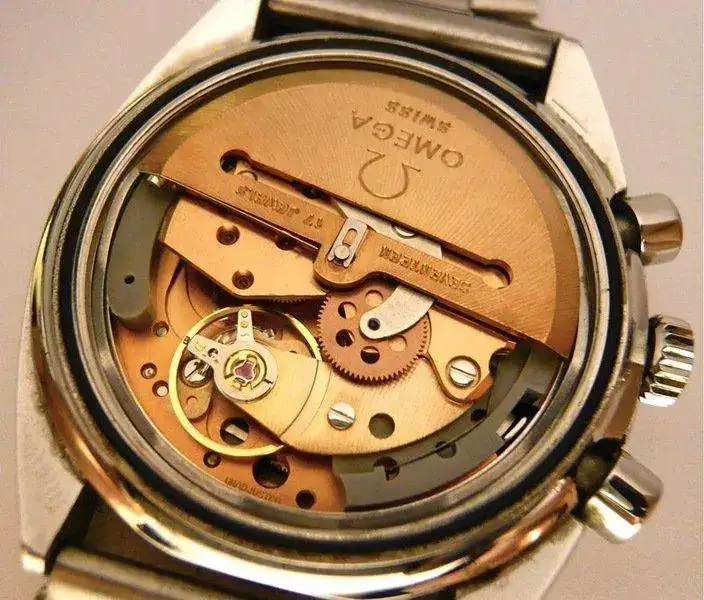 Movimiento de carga automática de base lemania con doble calendario , segundero continuo , acumulador de minutos central, acumulador de 12 horas e indicación de 24h (día noche), el denominado por omega calibre 1045.