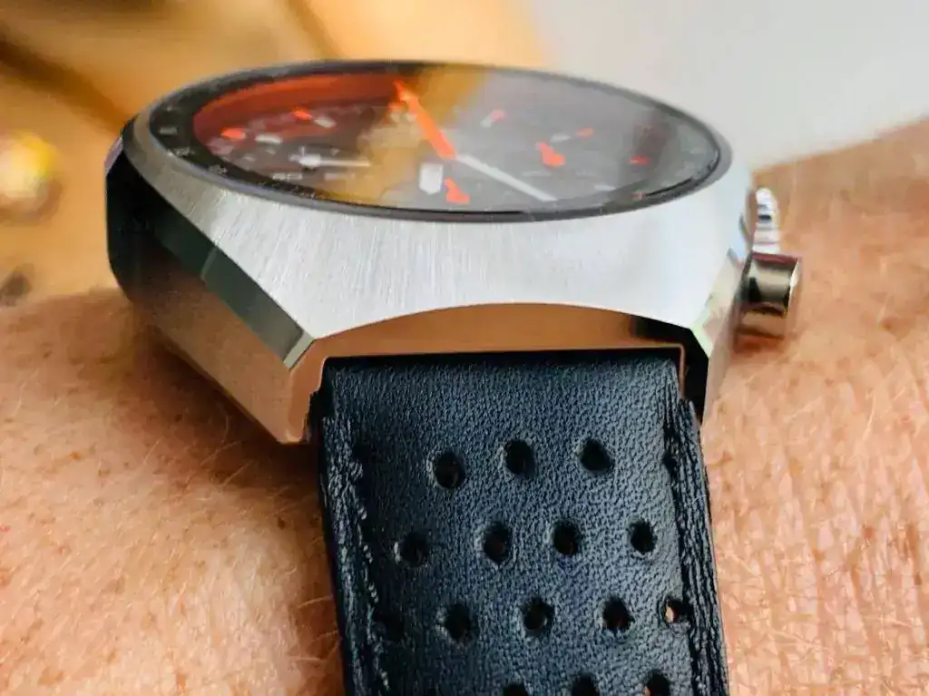 En mi caso, yo no “veo” el reloj con su armis, por lo que desde el primer minuto he utilizado el reloj con una correa Racing de cuero.
