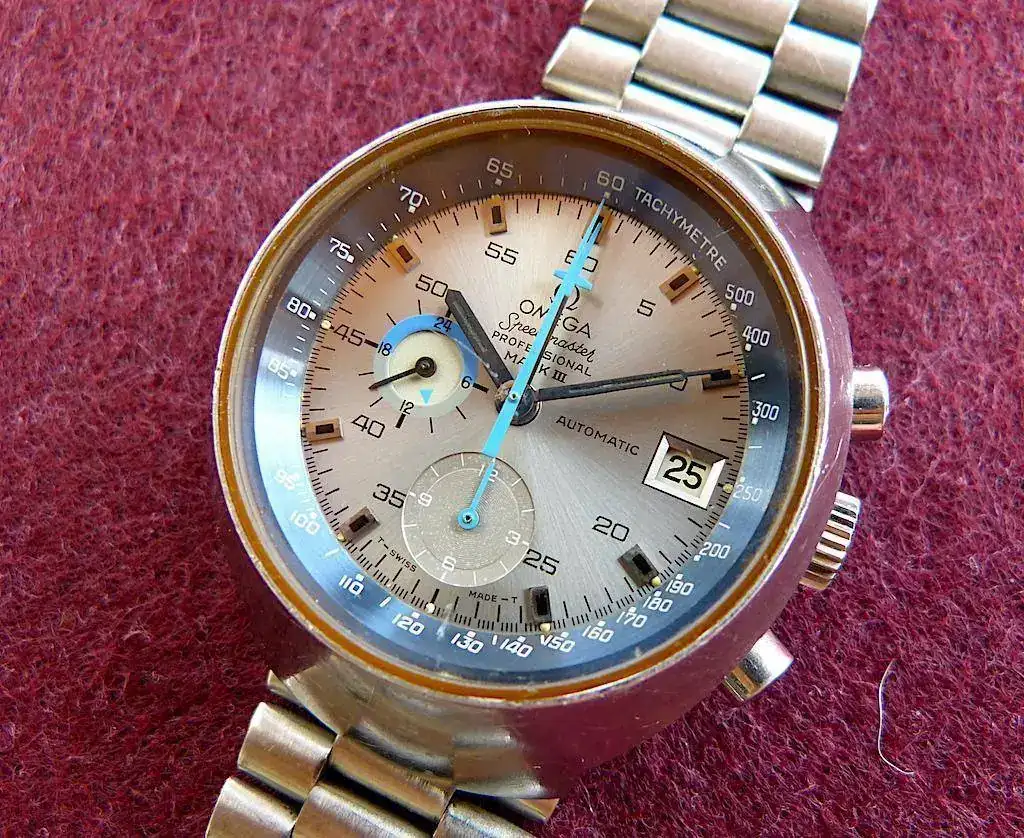 Omega Speedmaster Mark III con esfera plata. El reloj está en estado original y sin pulir.