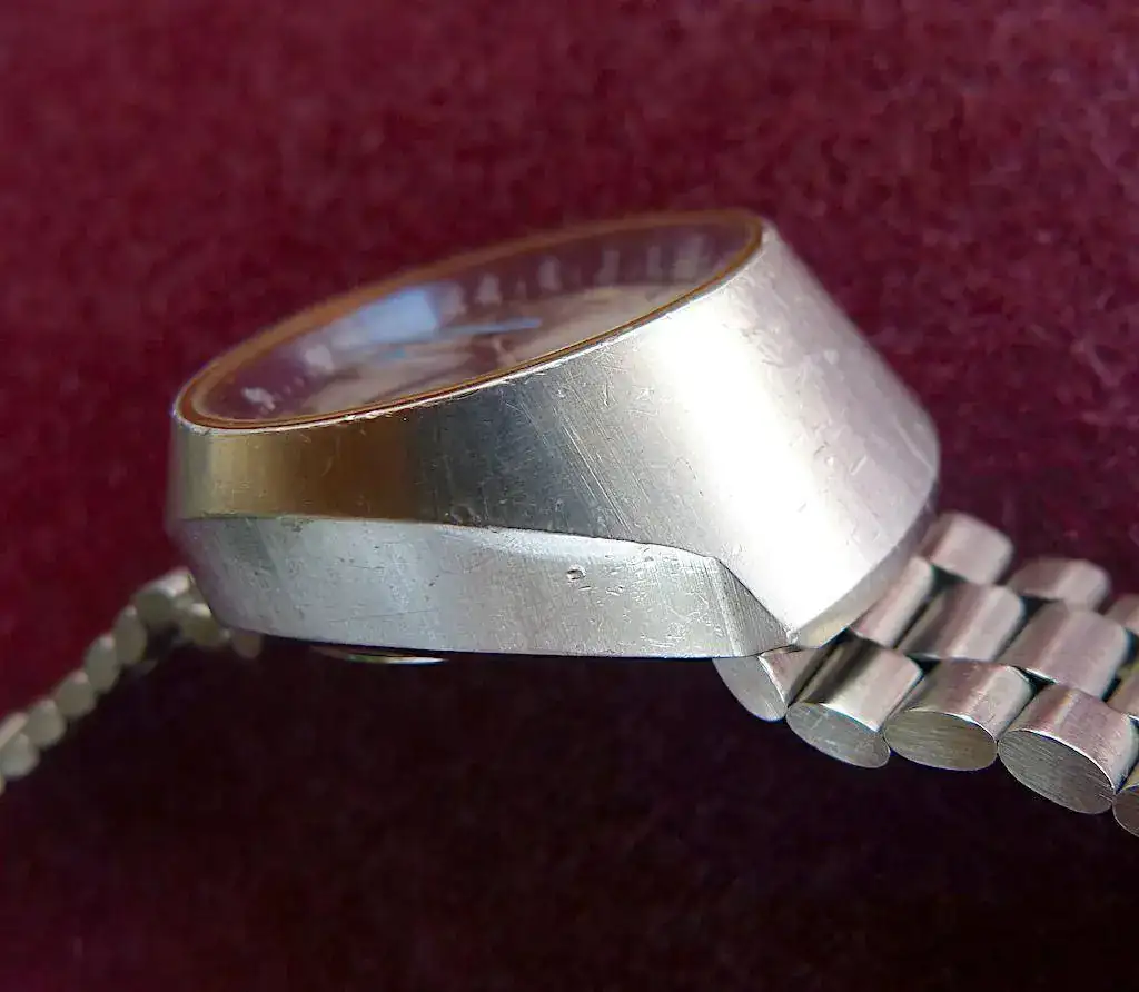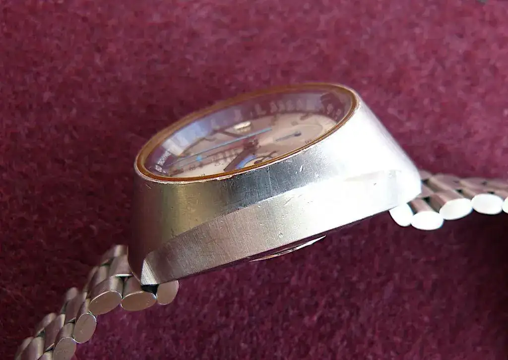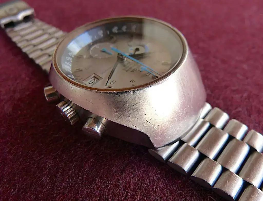 La caja tiene marcas leve de uso como se muestra en las fotos, pero aún conserva el acabado original rayos de sol, la esfera y agujas sin tocar ni restaurar y considerando sus años, están en muy buen estado sin manchas, halos o defectos de importancia.