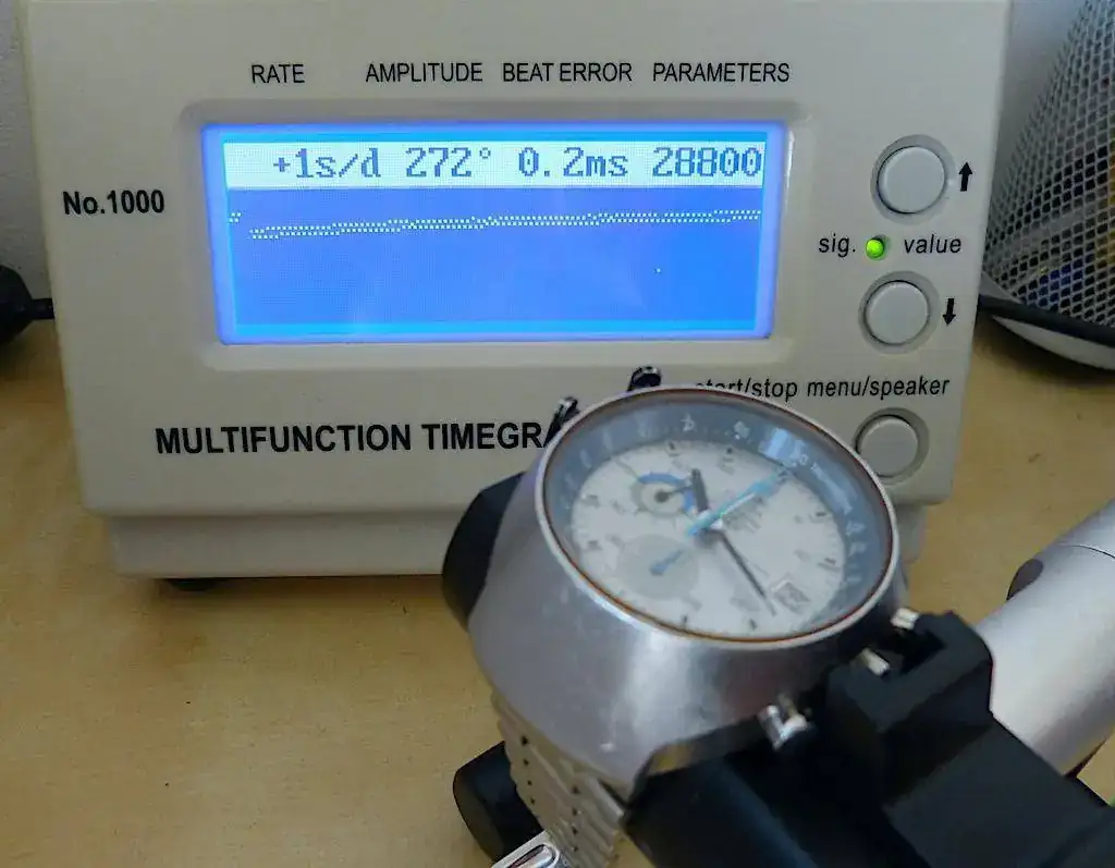 El calibre había sido revisado recientemente por el anterior propietario, y comprobado nuevamente por mi relojero Centro Certificado Omega, funciona correctamente y tiene una amplitud y marcha muy buenas. Número de serie 34.xxx.xxx que data alrededor de 1972. No tiene caja ni papeles.