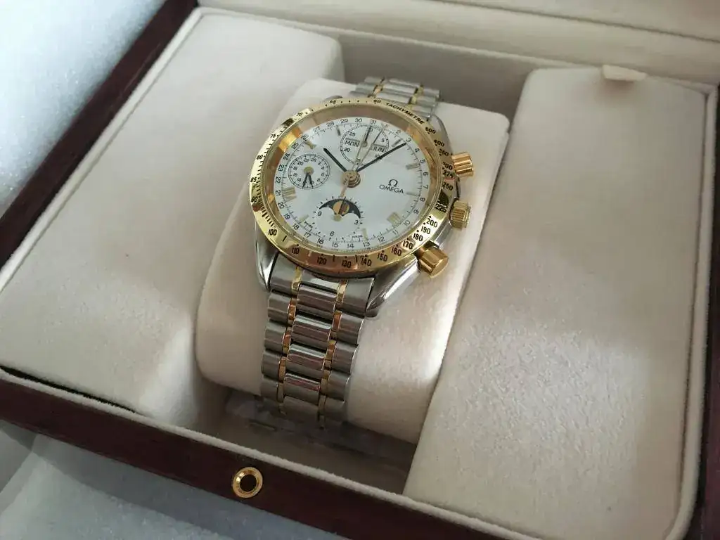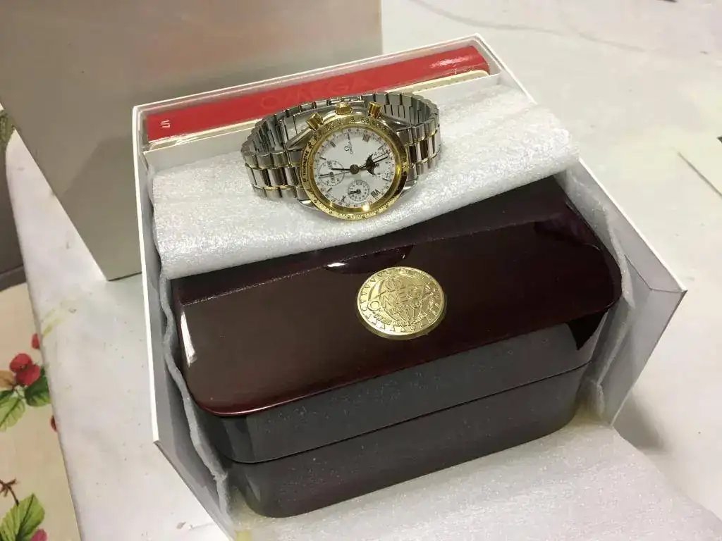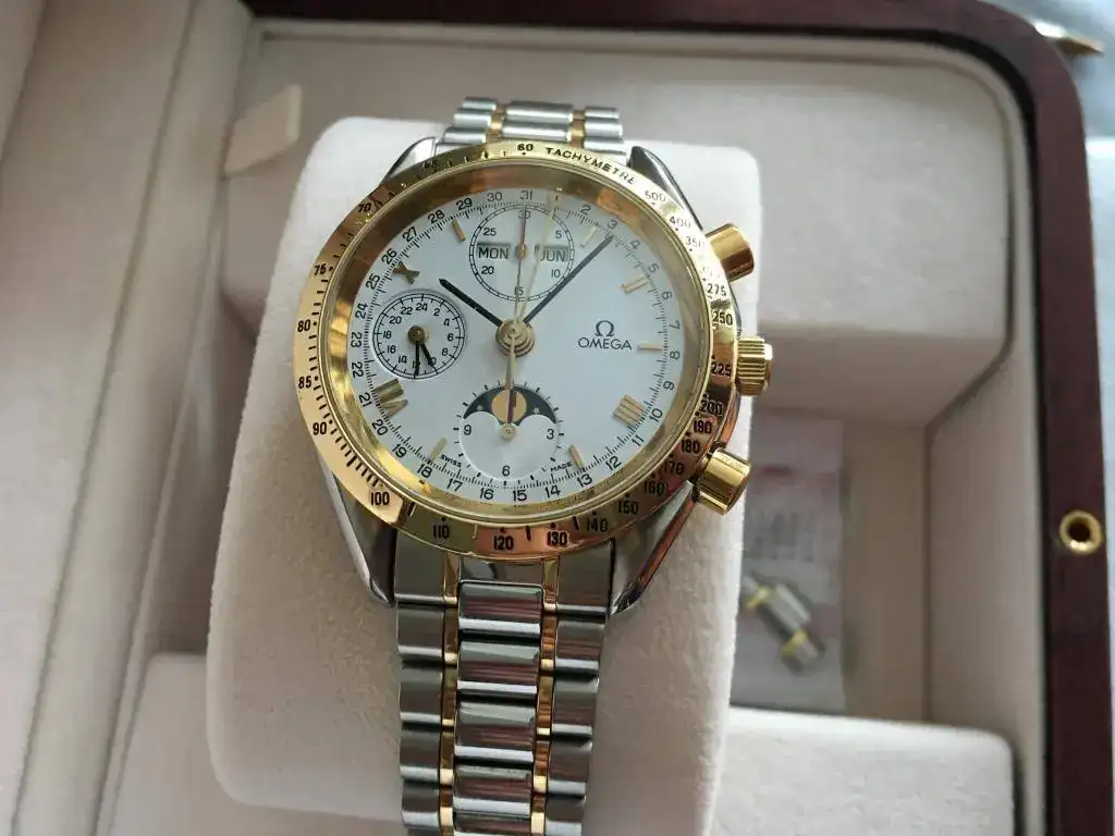Saco a la venta o cambio este elegante Speedmaster, tiene años pero está en bien conservado. El pasado mes de octubre se le hizo una revisión y va perfecto de marcha, lo único que le falta es la tarjeta sellada pero tiene el librito, portatarjetas...
