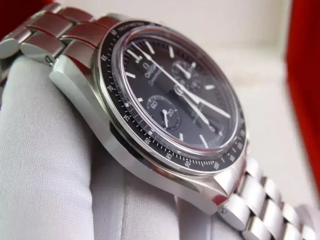 Uno de los mayores mitos de la relojería es el Omega Speedmaster, el famoso reloj que fue llevado en la misión espacial que llegó a la luna. Un reloj que ha celebrado hace poco su 60 aniversario y que ha visto como todos estos años se han lanzado versiones que los fans del Speedy han recibido en mayor o menor medida con los brazos abiertos. Pero bien es cierto que en ocasiones se le ha pedido más, algo más… un pequeño paso que a aunque los puristas no lo dan, los aficionados al emblemático cronógrafo agradecen, y eso ha sido un tamaño mayor de caja y por supuesto aprovecharse de los calibres coaxiales para poder abandonar la, en ocasiones, incomodidad del remonte manual. Por lo que el modelo que os mostramos hoy hace las delicias de muchos aficionados, tanto ya sean puristas o no, porque mantiene la esencia, pero es claramente una evolución que respeta los orígenes, pero marca una distancia.