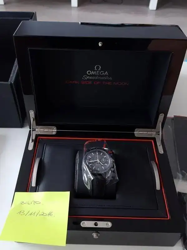 Fabulosa oportunidad de conseguir este increíble Speedmaster Moonwatch Dark Side of de Moon. Ref. : 311.92.44.51.01.003 en un estado impecable. Segunda correa original a estrenar. Caja y dotación completa. Comprado en Rabat Madrid el 30/07/14, por lo que tiene garantía oficial vigente hasta 29/07/18. (4 años)