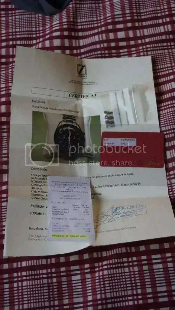 Se entrega tal y como se ve. Tiene su tarjeta (le falta la de la garantía). Por si acaso tiene certificado de originalidad. Viene con todos sus eslabones. No tengo la caja roja, por eso la entrego en esta increíble caja OMEGA de madera.