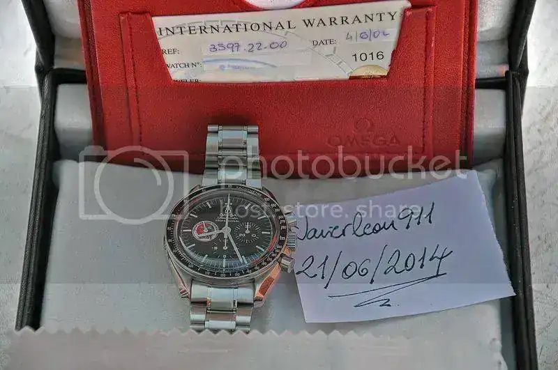 viene con estuche negro de Omega, 2 manuales, pictograma de garantía Omega sellada en 2002.