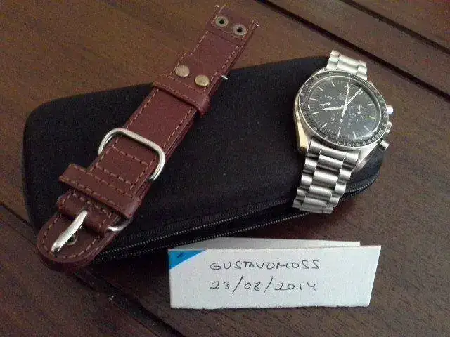 Cuando lo recibí, llevaba una milanesa, que cambié por su armís de acero correspondiente. También le cambié, en el SAT Omega, el cristal, que estaba muy rayado, por uno de HESALITE o PLEXI, creo que es lo mismo.