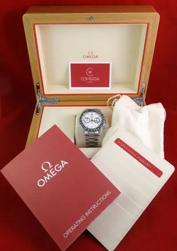 Proponemos para venta o cambio una de las últimas creaciones de OMEGA, el Speedmaster Racing, que sobre la base de los Speedmaster de 44, incorpora un bisel cerámico negro y un dial blanco mate espectacular, de esos que en directo ganan mucho pero son difíciles de fotografiar.
