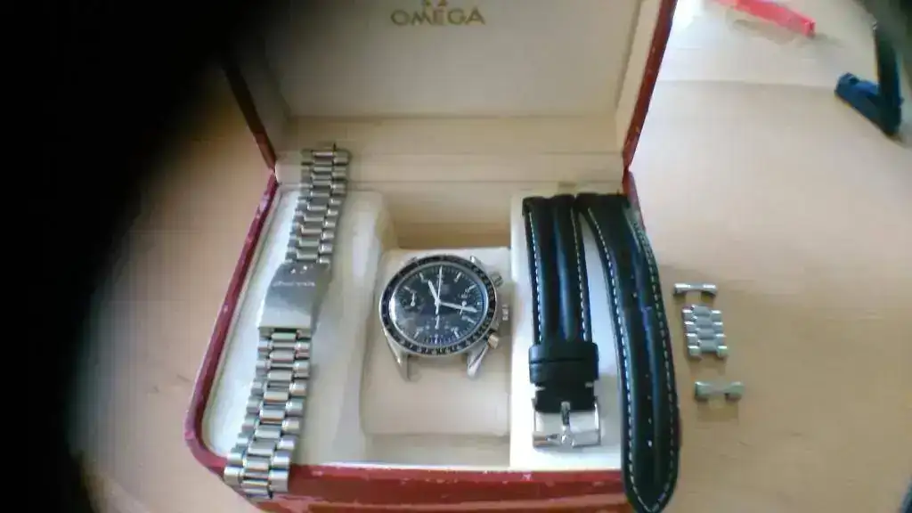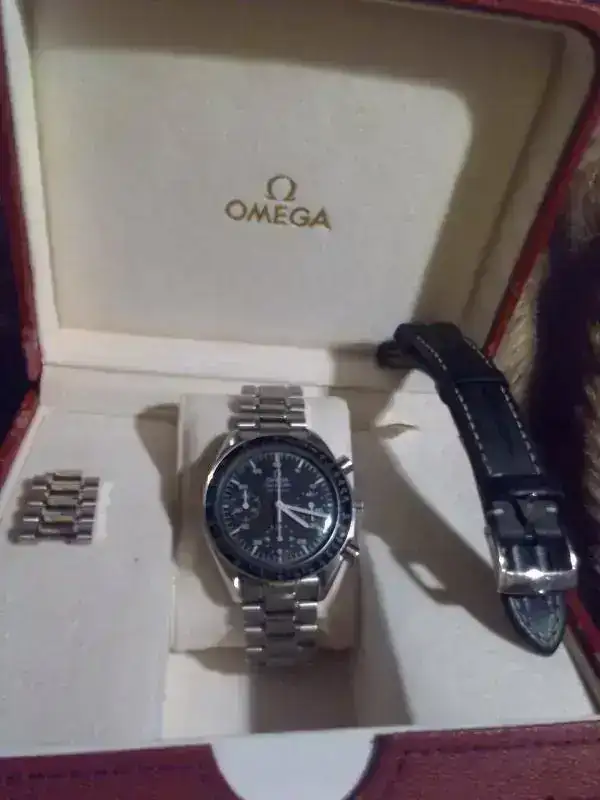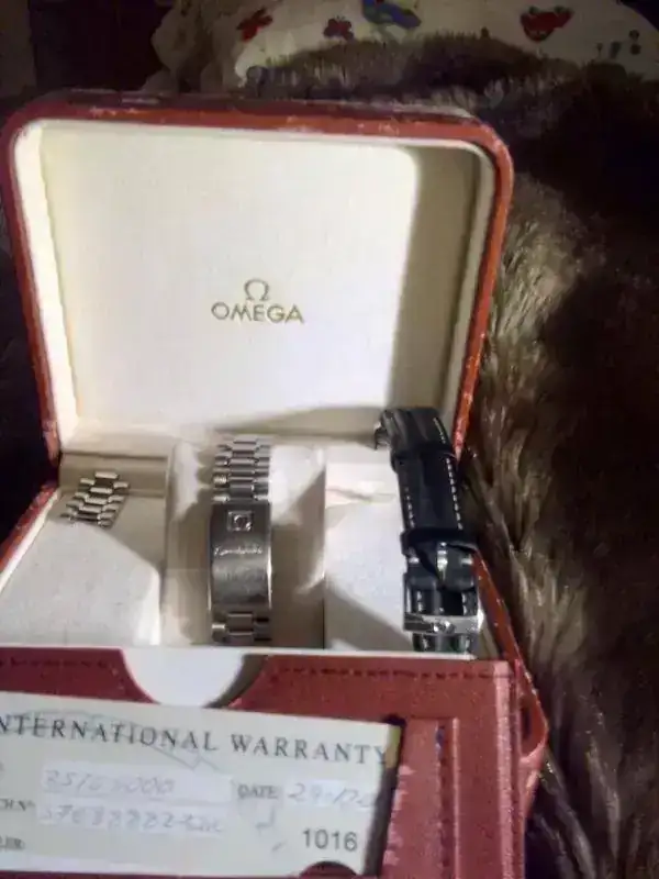 El reloj viene equipado con su armis original, junto con los eslabones sobrantes, así como una correa Omega de cuero en buen estado y otra de avestruz.
