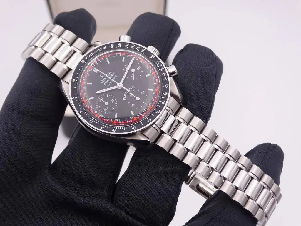 Una de las ediciones limitadas mas codiciadas y buscadas últimamente del Speedmaster, es la versión Racing del modelo reduced. Un Speedy automático en 39mm que se adapta perfectamente a cualquier muñeca; su dial Racing es hoy en día uno de los mas admirados por su combinación de colores. La edición limitada en honor a Michael Schumacher ha ido ganando adeptos con el paso del tiempo, siendo ahora mismo un reloj de culto, sobretodo las unidades que se encuentran con su dotación completa. Sin lugar a dudas no solo un reloj altamente coleccionable, sino también una pieza perfecta para el día a día.