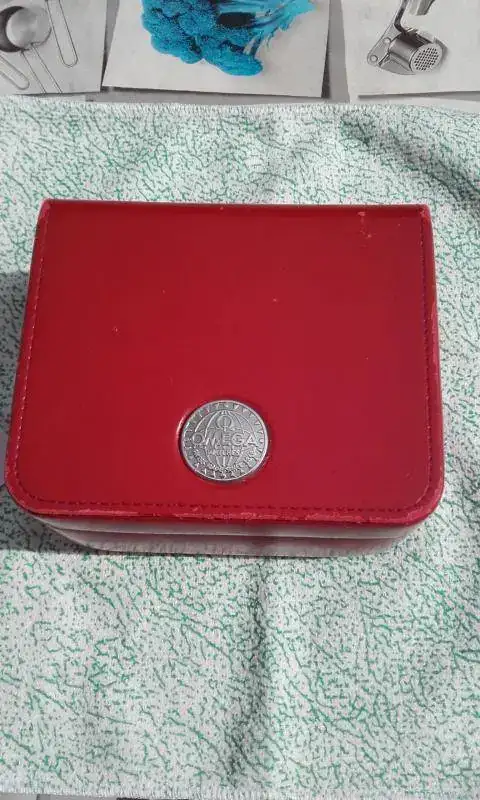 Tiene su caja de piel roja, con leves roces en algunos bordes.