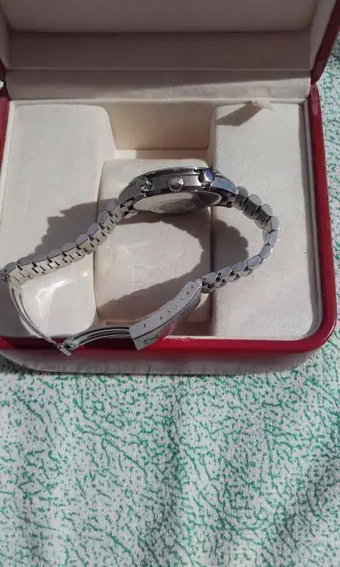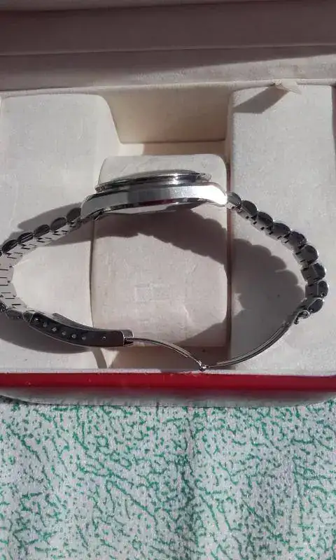 Lleva su armis original, acortado para mi muñeca, pero guardando eslabones sobrantes como veis en imagen posterior.