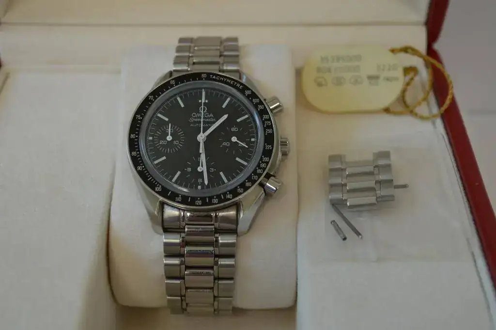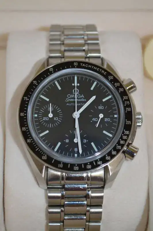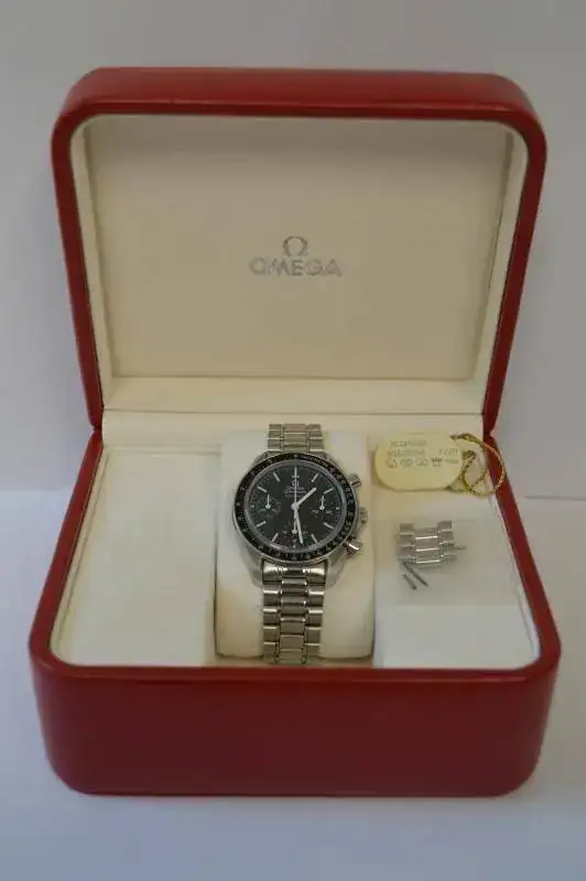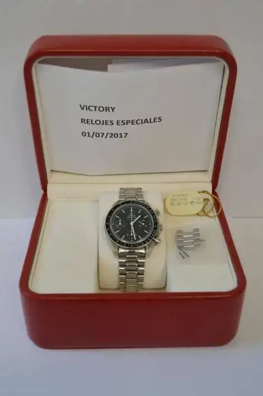 Hola, pongo este Omega Speedmaster Reduced que hace menos de un año encontré en un distribuidor oficial en estado NOS, se encuentra con la garantía oficial vigente, esta completo de cajas tarjetas, eslabones sobrantes, etc. Tiene alguna micro rallada en el cierre pero ninguna profunda.