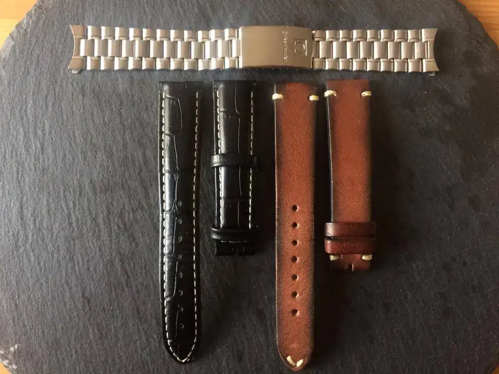 Lo entrego con 3 correas de piel (2 vintage y una en negro), buckle omega original cepillado y su armis.