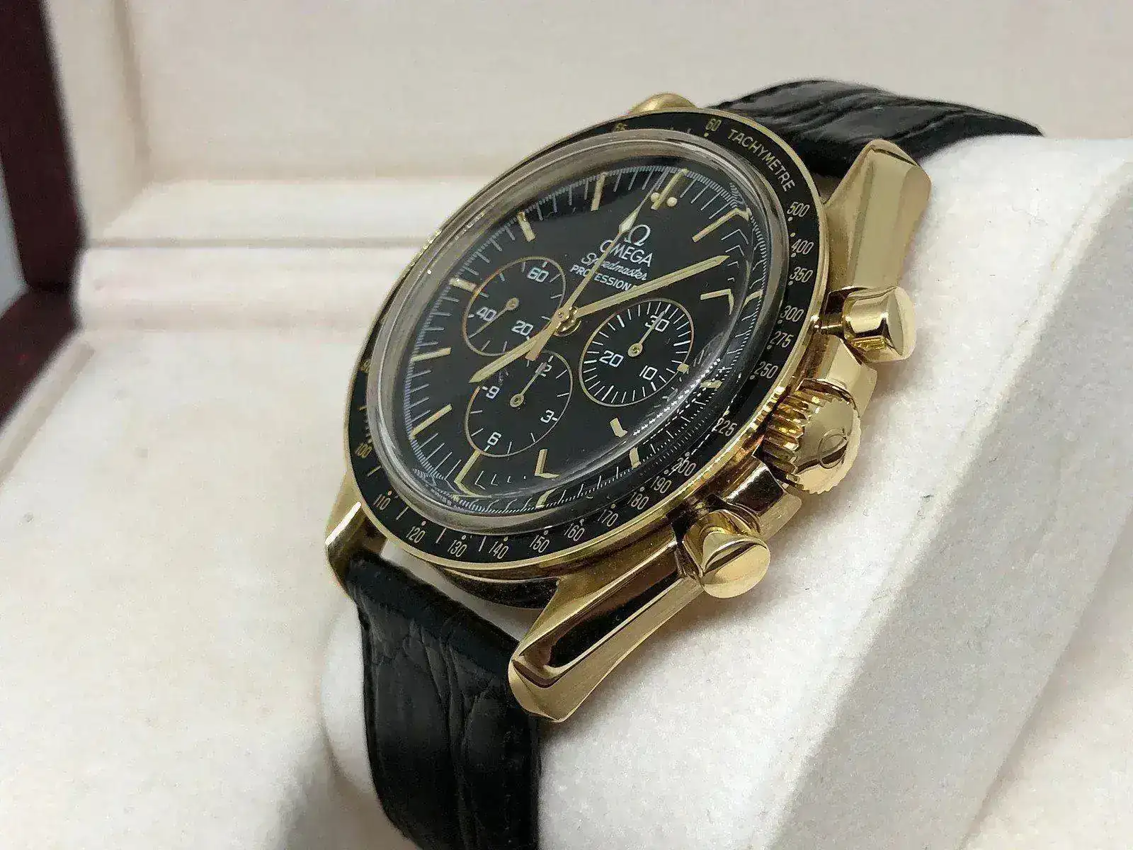 OMEGA SPEEDMASTER PROFESIONAL JUBILEE 27CHRO C12 FULL SET,ORO 18K,REFERENCIA 3191.50.00,EDICCION LIMITADA A 999 PIEZAS PARA CELEBRAR EL 50TH DE OMEGA,AÑO 1994,CALIBRE 321,INVITO A OJEAR LA WEB DE FRATELLO WATCHES PARA VER LA PIEZA EN CUESTION,REVISION RECIEN PASADA,UN AÑO DE GARANTIA TIMEGOLF SOBRE LA MAQUINARIA.