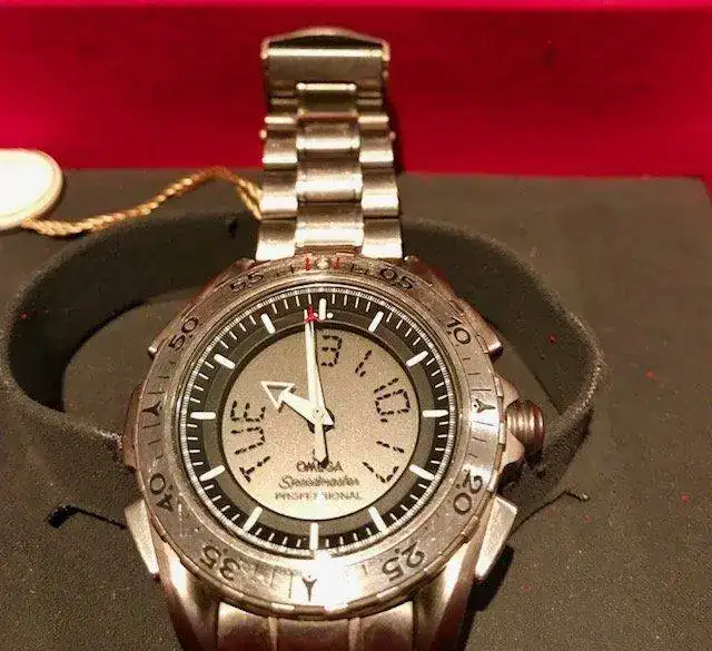Vendo un extremadamente raro de ver Omega Missions Speedmaster X33 de Segunda Generación. Si encontrar un Primera Generación es raro, un Segunda es prácticamente imposible, a mi me costó más de un lustro de buscar y buscar hasta que apareció éste. Con este reloj no hay término medio : o se odia o se quiere, pero históricamente es el Speedy que diseño Omega para la Misión a Marte y era en la época lo más avanzado tecnológicamente. Se vendieron pocos y mucho menos a particulares, ya que en principio sólo estaba al alcance de pilotos militares o astronautas.