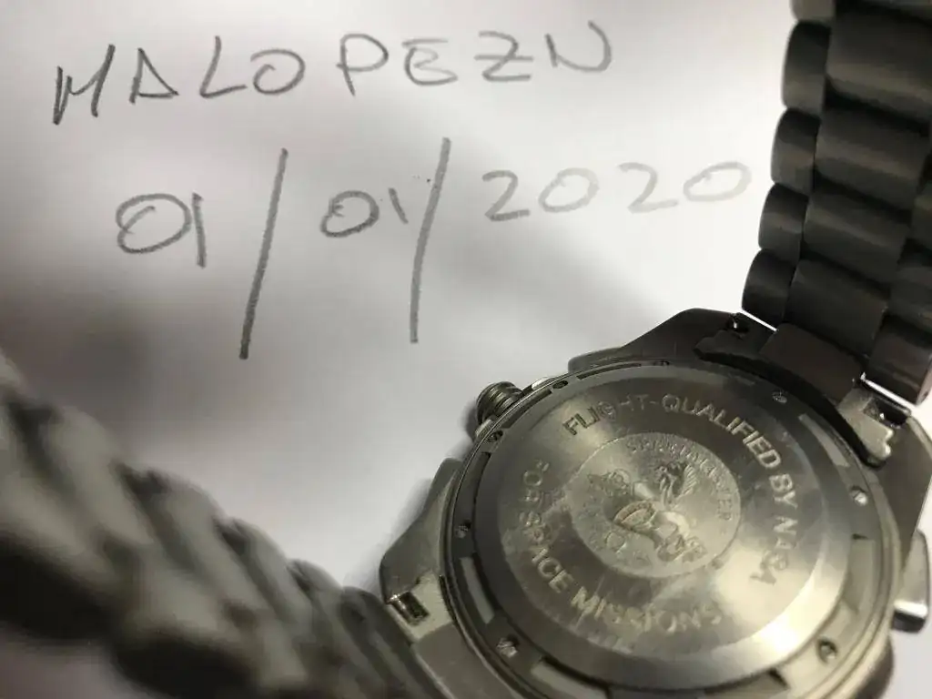 Hay dos generaciones, el 1 y el 2, el 1 se podía comprar con cierta facilidad, pero el 2 no, ese era el destinado a pilotos y astronautas, así que ojo que este es un Gen2, con su maravillosa tapa trasera con leyenda de la NASA. Desde hace muchos años estuve interesado en él, tanto fue así que un amigo se lo compró en Japón después de haberle hablado yo de él y haberle insistido con el tema, años más tarde me aviso de que lo iba a vender, y se lo compré. Ha estado conmigo unos 7 u 8 años, me lo pongo pocas veces, pero siempre ha sido uno de mis favoritos. Ahora llegan proyectos nuevos y tengo que hacer caja.