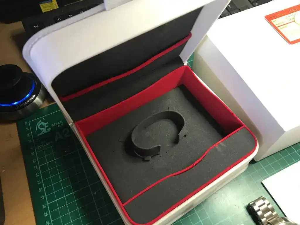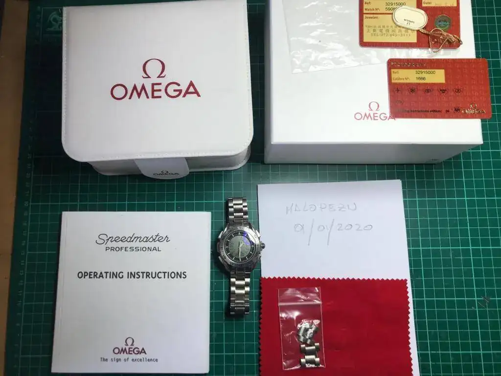 Su origen es de Japón, casi siempre que veo uno de estos viene de allí, desconozco el por que. La dotación es perfectamente completa, con todos sus eslabones, tarjetas, instrucciones, la caja de cartón, la de EVA (tejido de traje de astronauta). Incluyo también una correa original de kevlar que costó algo más de 200€, también con un uso moderado. Le sienta genial.