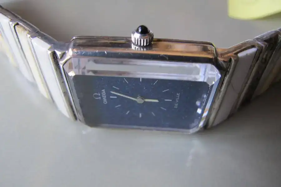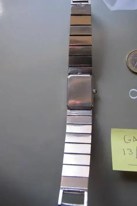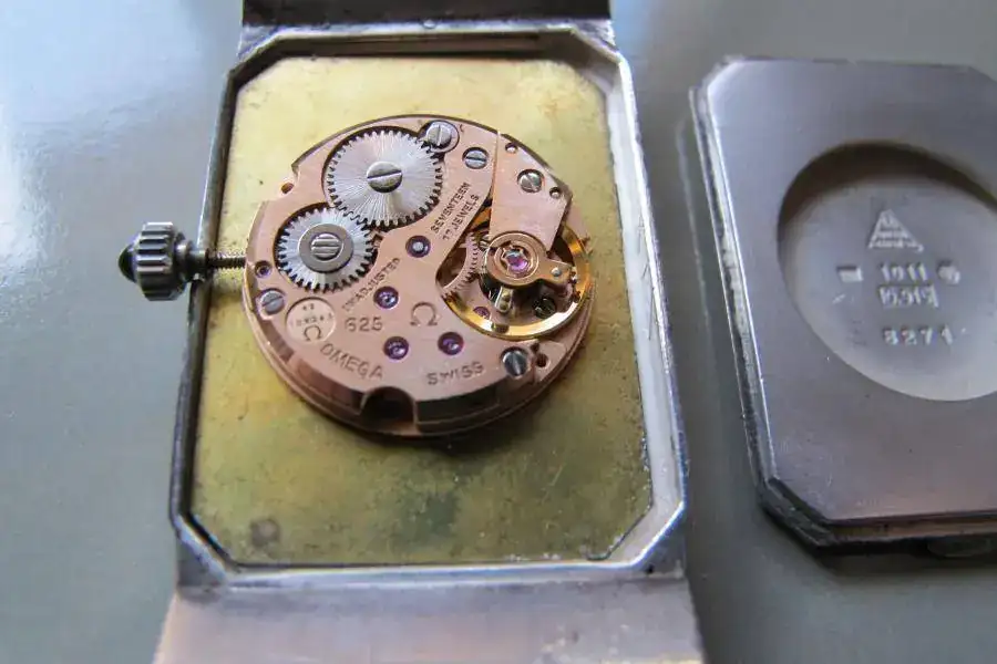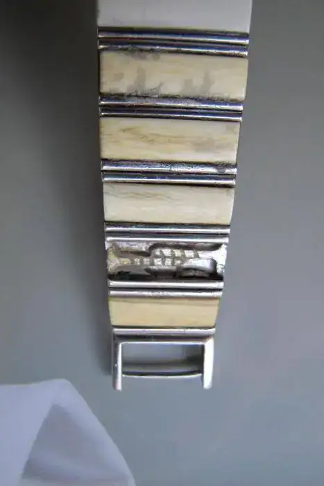 Es un reloj tipo joya, mecánico de cuerda manual. Marcha perfecto. El brazalete integra placas de marfil pero le faltan dos (imagino que alguien habilidoso lo puede solucionar sin problema). En cuanto al estado me remito a las fotos: le hace falta un pulido. Es una pieza muy bonita y original. Pesa 85gr. De extremo a extremo mide entre 18 y 19 cm. La caja mide 30x25mm sin corona.