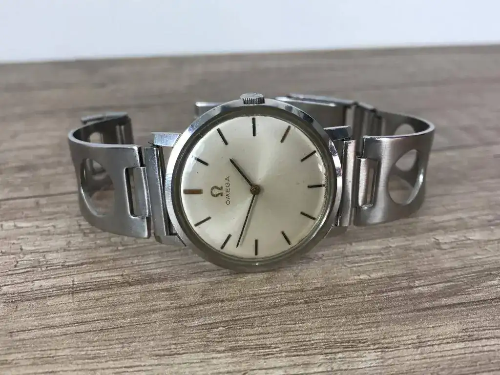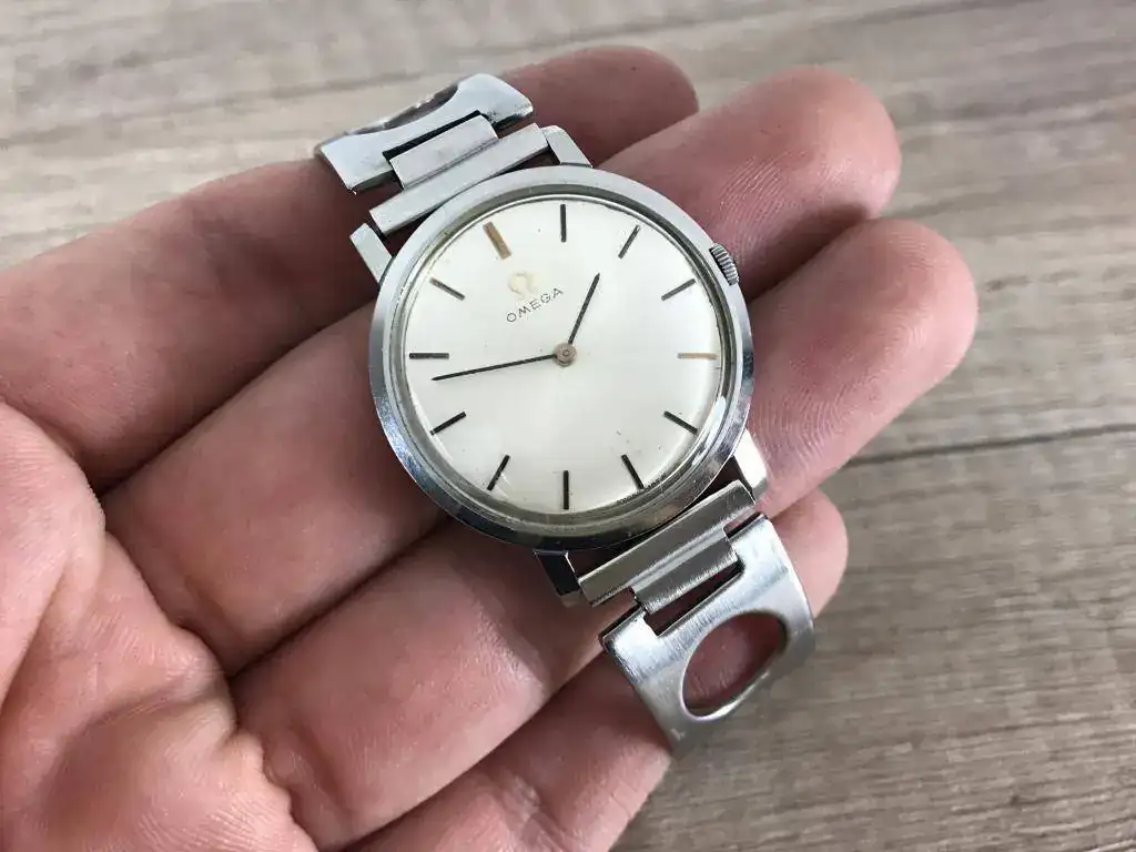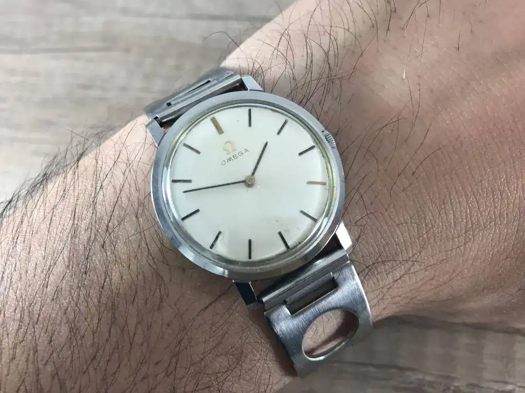 Buenas, vendo este Omega vintage que me ha entró hace tiempo como parte de pago y que no uso. Esta revisado de hace un mes mas o menos y con garantía de esa revisión. El brazalete que lleva no es Omega, y da para muñecas de 19 como mucho.