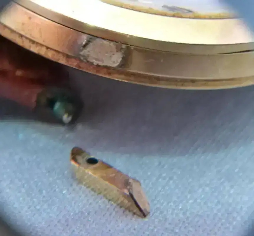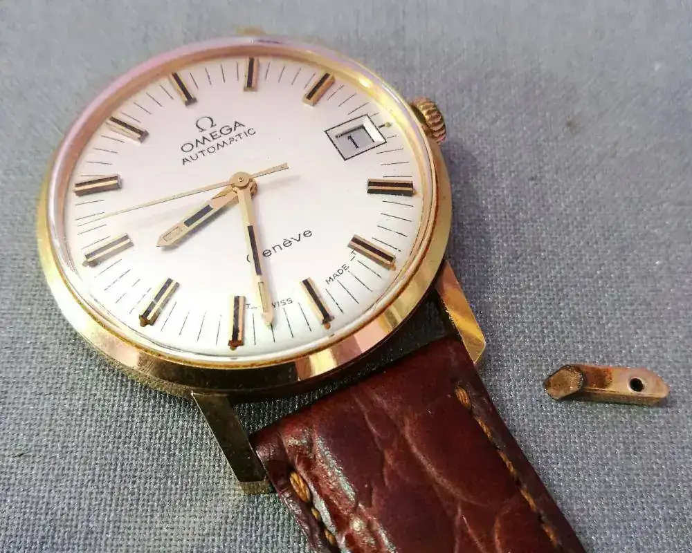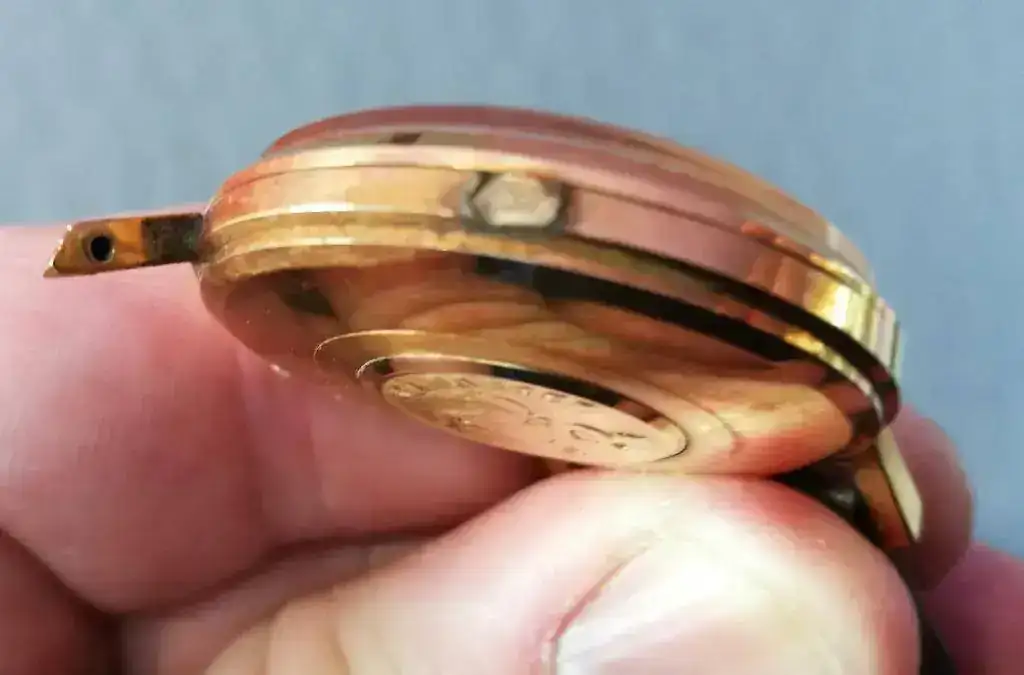 También creo que el reloj es macizo de oro y no un baño a juzgar por la homogeneidad del color tanto en la caja como en la asa en en el punto de rotura y toda su seccion.